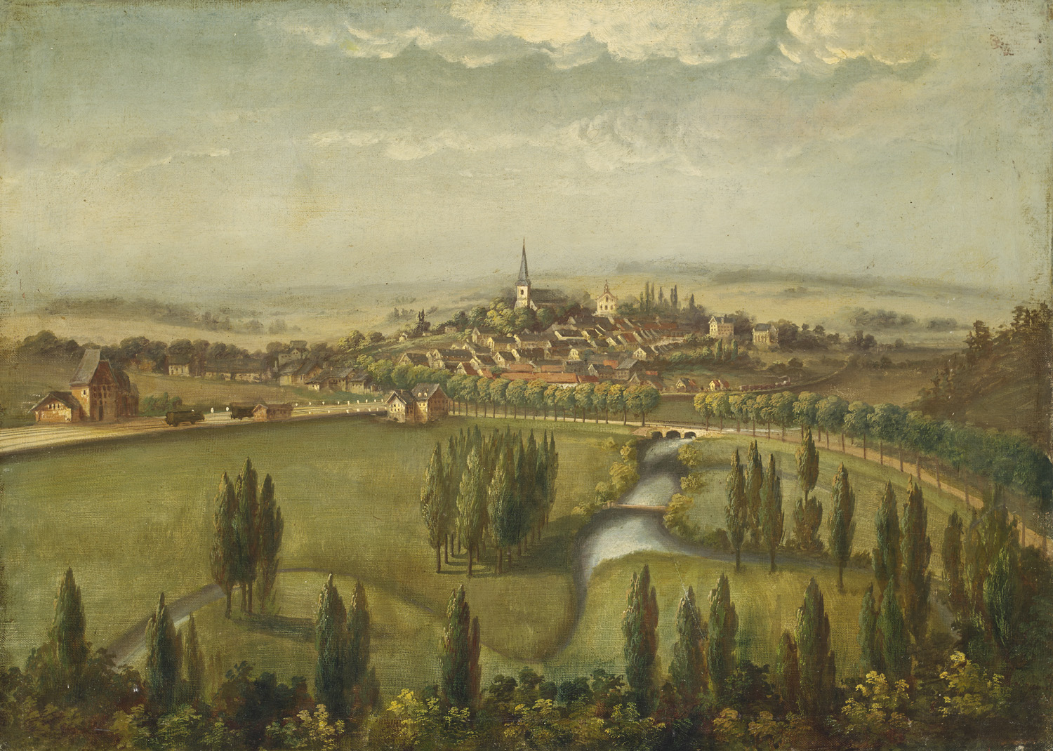 Prints and Engravings - Views – Oil on canvas. - Varnish slightly yellowed and darkened, with light surface soiling, partial light abrasion, only isolated small paint chips. Overall in good condition.