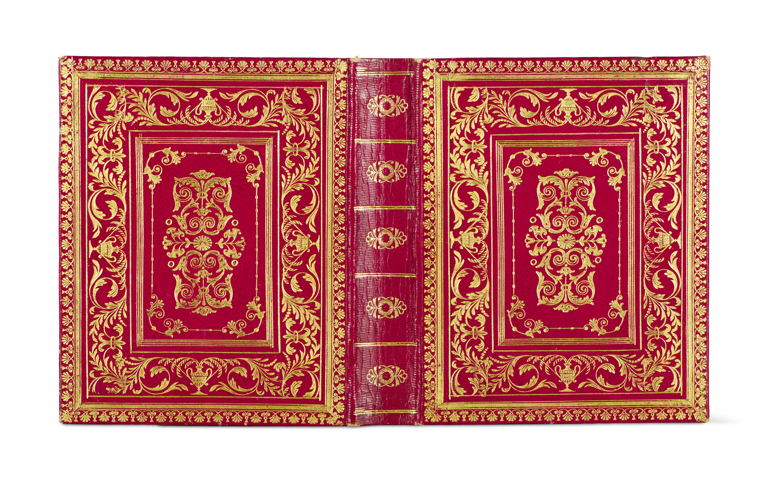Berliner Kalender auf das Gemein-Jahr 1837. Hrsg. von d. Königlichen Preußischen Kalender-Deputation. Mit 13 Kupfertafeln. Berlin, Kalender-Deputation, 1836. Kl.-8°. kalendarium, 296, 100, 88 Seiten. Roter Orig.-Saffian-Ganzlederband mit reicher Rücken- und Deckelverzierung und dreis. Goldschnitt (Ecken minimal bestoßen).