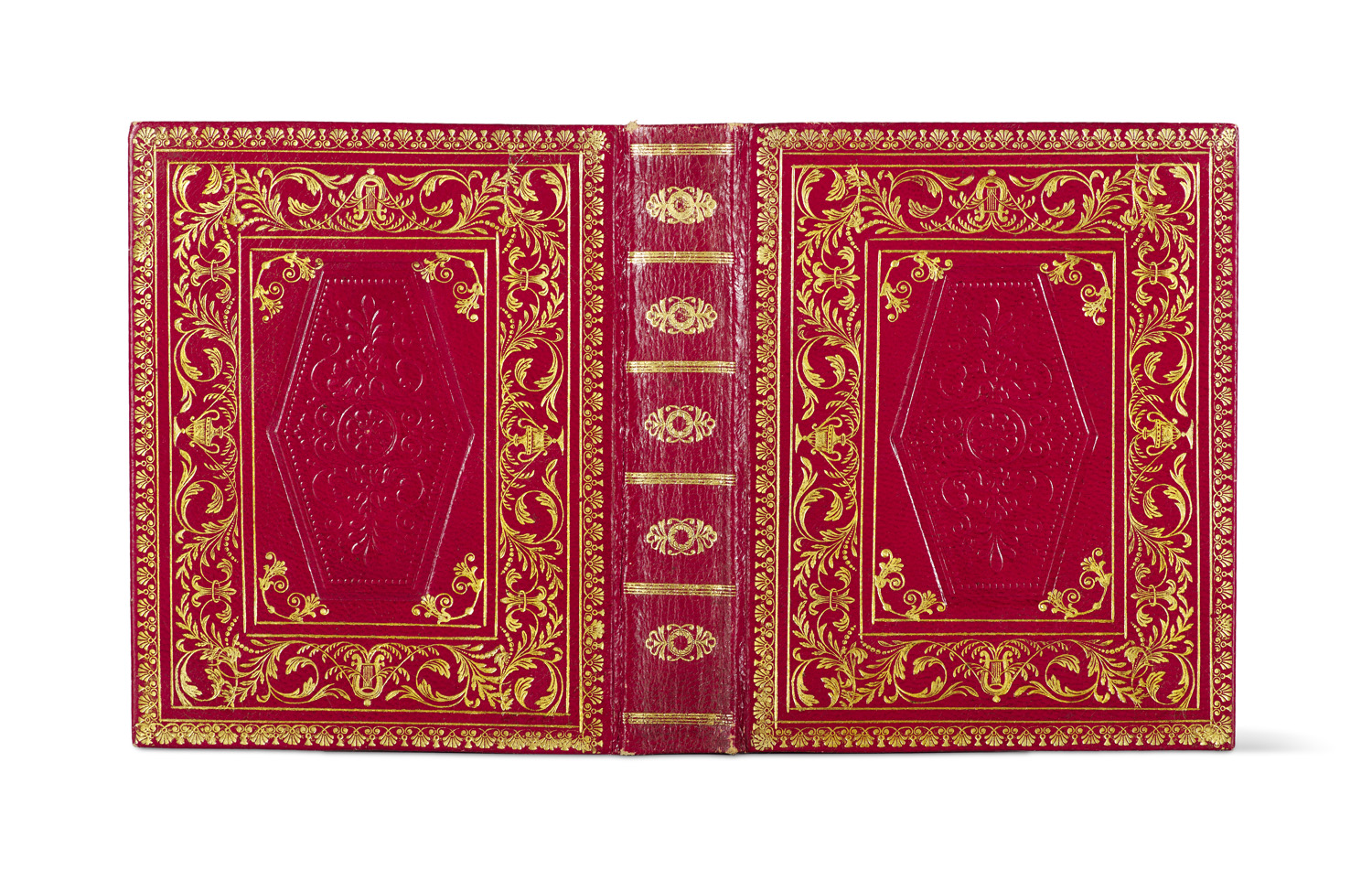 Berliner Kalender auf das Gemein-Jahr 1841. Herausgegeben von der Königl. Preuß. Kalender-Deputation. Mit 13 Kupfern. Berlin, Kalender-Deputation, 1840. Kl.-8°. Kalendarium, 306, 96, 110 Seiten. Roter blind- und goldgeprägter Orig.-Maroquinband mit reicher Rücken- und Deckelvergoldung sowie dreis. Goldschnitt.