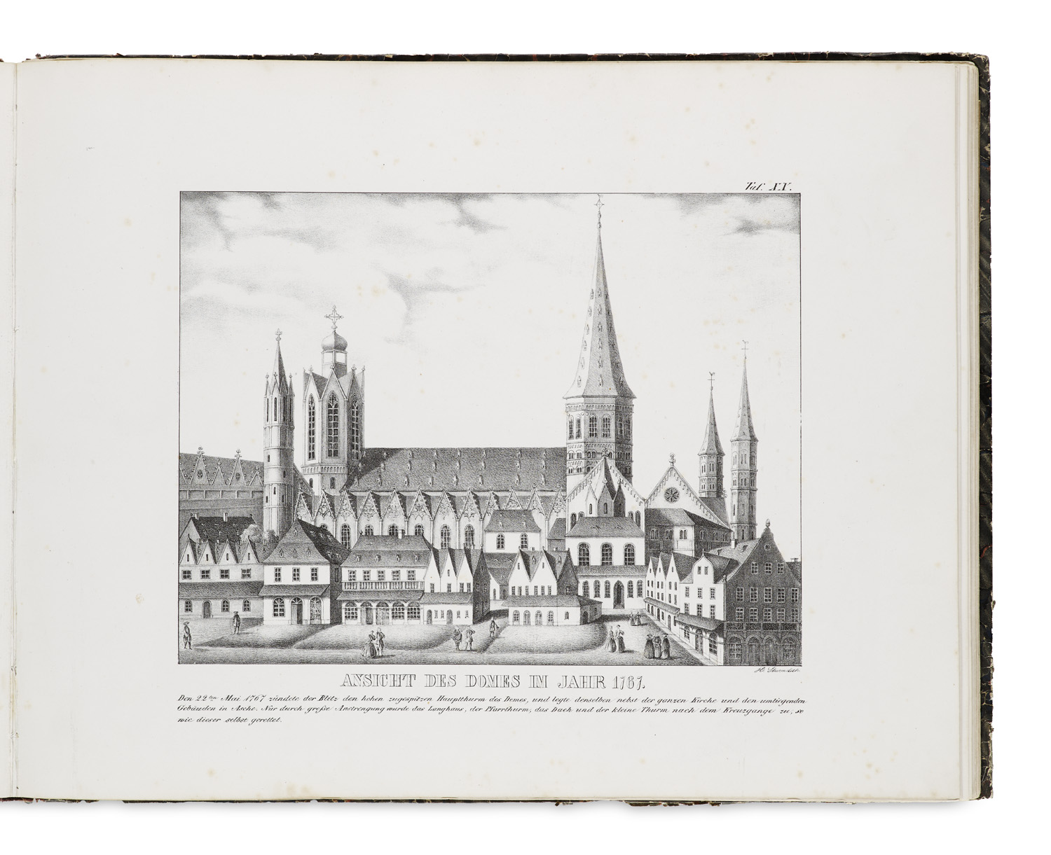 Orts- und Landeskunde mit verschiedenen Schlagworten – Erste seltene Ausgabe. - Thieme/Becker 35, S. 175. - Walter, Hessen 2279. - Prachtvolles Ansichtenwerk von Mainz in Kreidelithographie mit Anmerkungen zur Geschichte der Gebäude. Die 35 großformatigen Tafeln gehen auf ältere Vorlagen zurück und zeigen größtenteils Bauten, die während der Französischen Revolution bzw. in der nachfolgenden napoleonischen Herrschaft zerstört bzw. abgerissen worden waren. Enthält Ansichten vom Dom, Domplatz, Theater, Martinsburg, Aureuskapelle, Stephanskirche, Sebastianskirche, Kloster St. Agneten, Justiz-Palast, Dahlheimer Kloster, Carthause, Schlosskapelle, Orangerie, Franziskanerkirche, Fischthurm, Holzthurm, St. Peterskirche, Hagenmünsterkirche, das alte Schloss u.a. - Etwas stockfleckig, insgesamt gutes Exemplar.