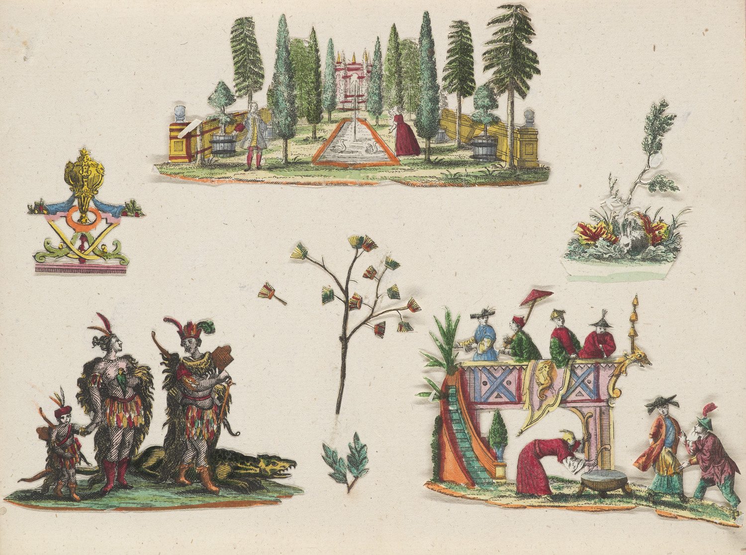 29 ausgeschnittene, montierte Motive. 18. Jh. Blattmaße bis zu 20,5 x 15,5 cm.