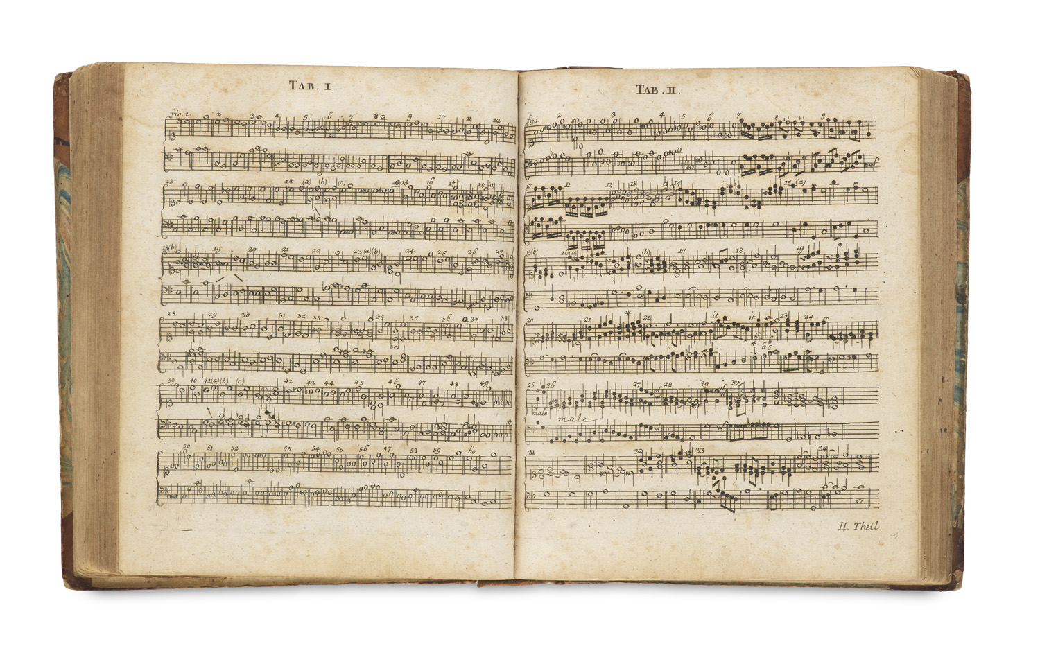 Varia and Miscellaneous – Complete copy, with all music tables. - Part 1 in the second, revised, edition, the other parts in the first edition. - Along with the "Treatise on the Fugue," one of Marpurg's (1718-95) two major works, based on the theories of Rameau and the practical rules of Carl Philipp Emanuel Bach. Marpurg is one of the most important music theorists of the Enlightenment. - With a general index of the first three parts, as well as the initially unplanned and sometimes missing appendix. - Title of part 1 with some underlining. Partly soiled, foxed, and browned, with slight waterstains.