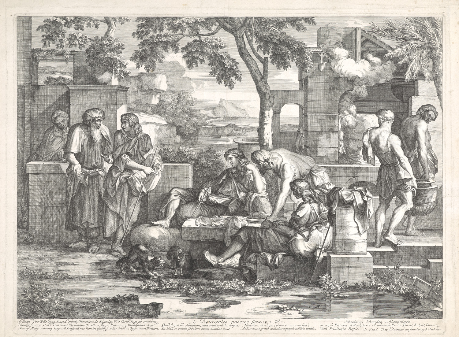 Esurientes pascere. Montpellier, um 1665-70. Kupferstich auf Bütten. 43 x 58,5 cm (49 x 64 cm). Mit gestochenem Titel und gestochener weiterer Bezeichnung sowie Angaben zum Künstler.