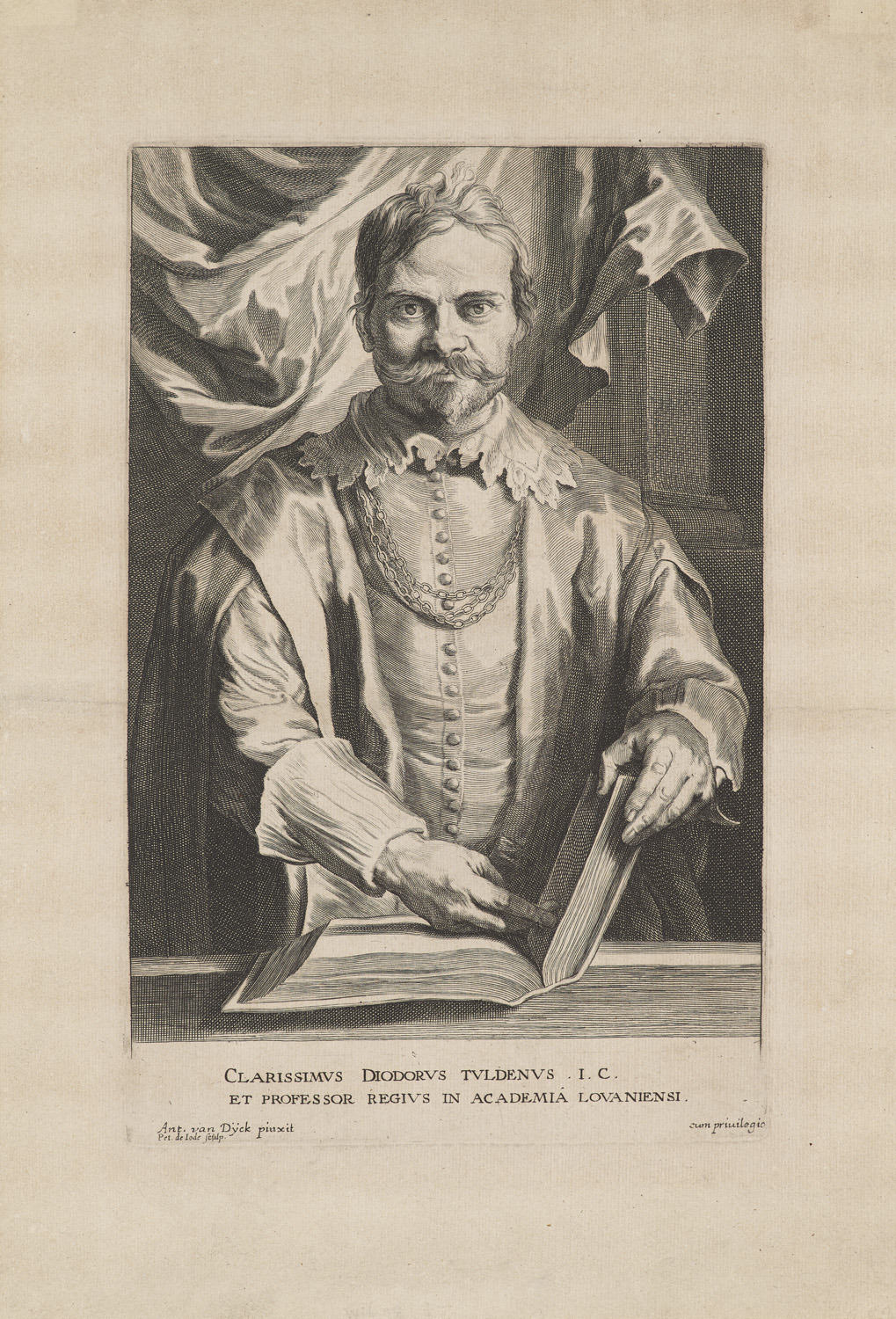 Old Master Prints – Engravings on vergé (with different water marks). Mounted. - Provenance: Ambroise Firmin-Didot (Lugt, 119), Felix Oswald Heinrich Graefe (Lugt, 1092.a), Arenberg (Lugt. 2769), Arenberg (Lugt, 2794). - The portraits are from a series of portraits entitled "Icones Principum Virorum". The engravings are based on drawings by Antonius van Dyck and were engraved and printed by various people. Antonius van Dyck was a Flemish painter and graphic artist and was known above all for his portraits. The people depicted are: Clarissimus Diodorus Tuldenus, Clarissimus Erycius Puteanus, Pieter de Jode Junior, Willem Hondius and Sebastian Vrancx. These are various Dutch personalities from the artist's time. - Partly slightly brownstained, somewhat dusty. Some with annotations on the reverse. Mostly with wide margins, engravings in good condition.