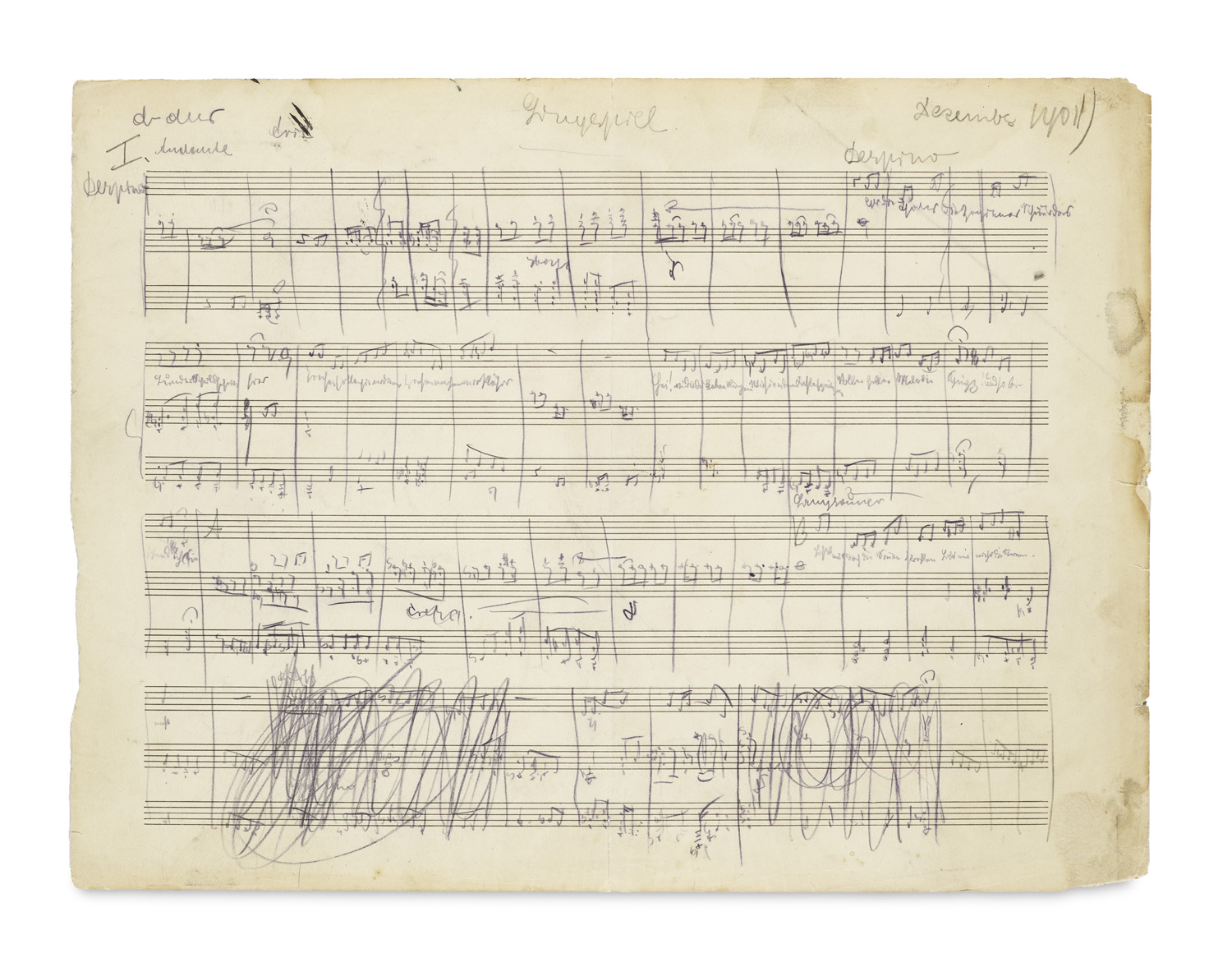 Singspiel. Eigenhändiges Manuskript des Dirigenten und Komponisten (1886-1954). In Bleistift auf liniertem Notenpapier. o.O., Dez. 1901. 2 S. (unvollständig). Ca. 27 x 36 cm