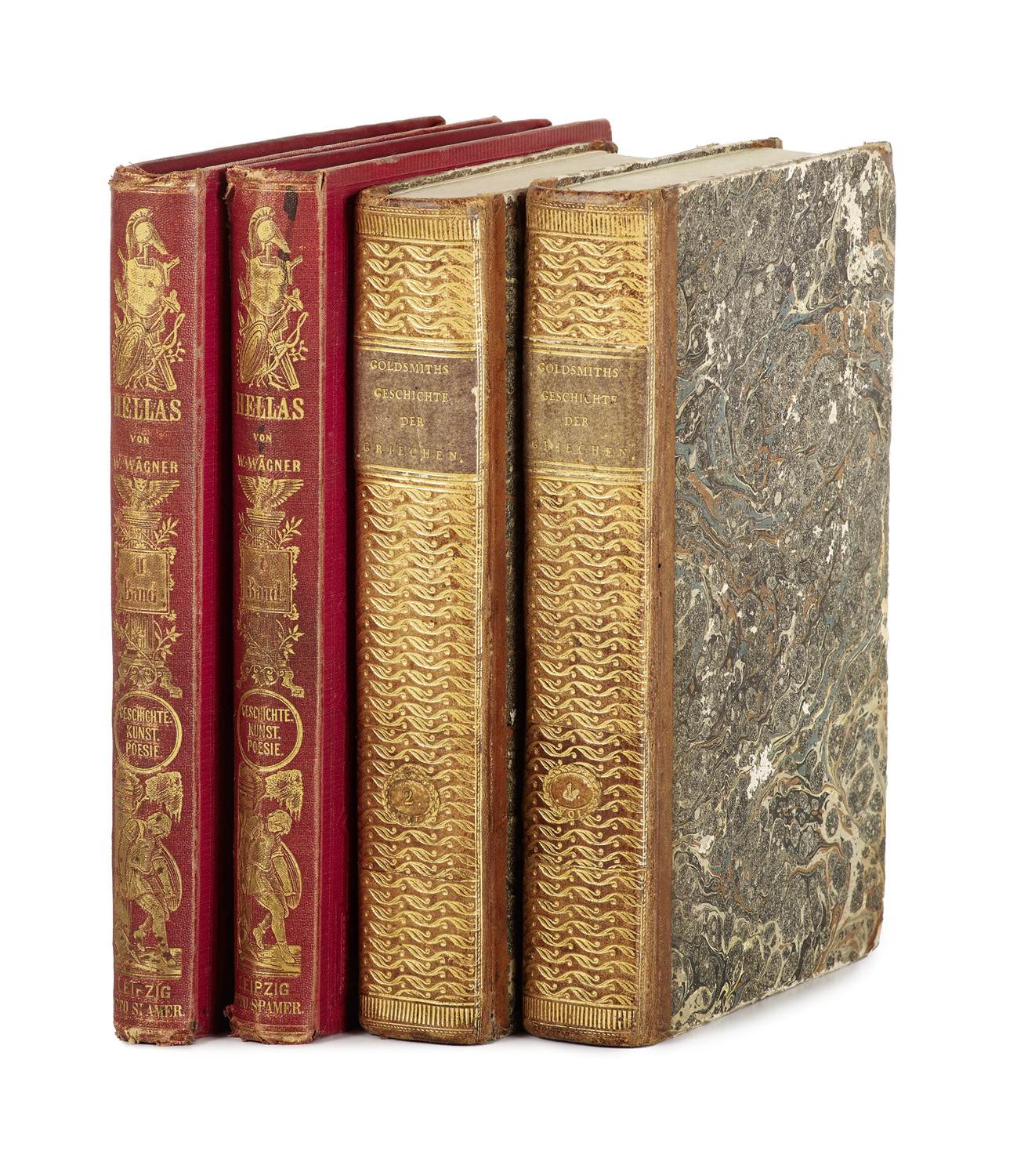 Geschichte der Griechen von den frühesten Zeiten bis auf den Tod Alexanders des Großen. Nebst einem kurzen Abriß der Geschichte Griechenlands von dieser Periode an, bis auf die Eroberung Constantinopels durch ie Othmanen. 2 Bände. A.d. Engl. nach der neuesten Ausgabe von C. D. Beck. Leipzig, Schwickert, 1792-93. XC, 402, VI, 528 S. goldgepr. HLdr. d. Zt.