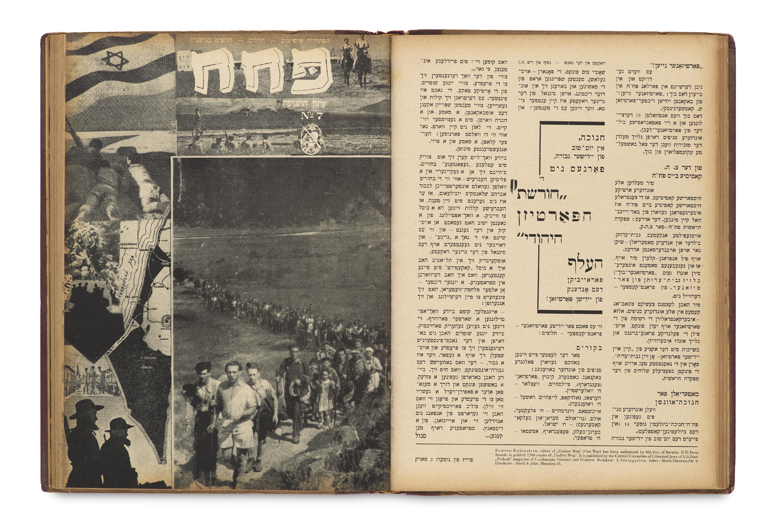 Pechach. Magazine of Combatants. (Zeitschrift). Hebräisch. Mit zahlreichen Abbildungen. Nr. 1 - 16. München, Stiehl & Jehle, 1947/48. 4°. ca. 320 S., je Heft ca. 20 Seiten. (zus. in) Halbleinwand d. Zt. (beschabt).