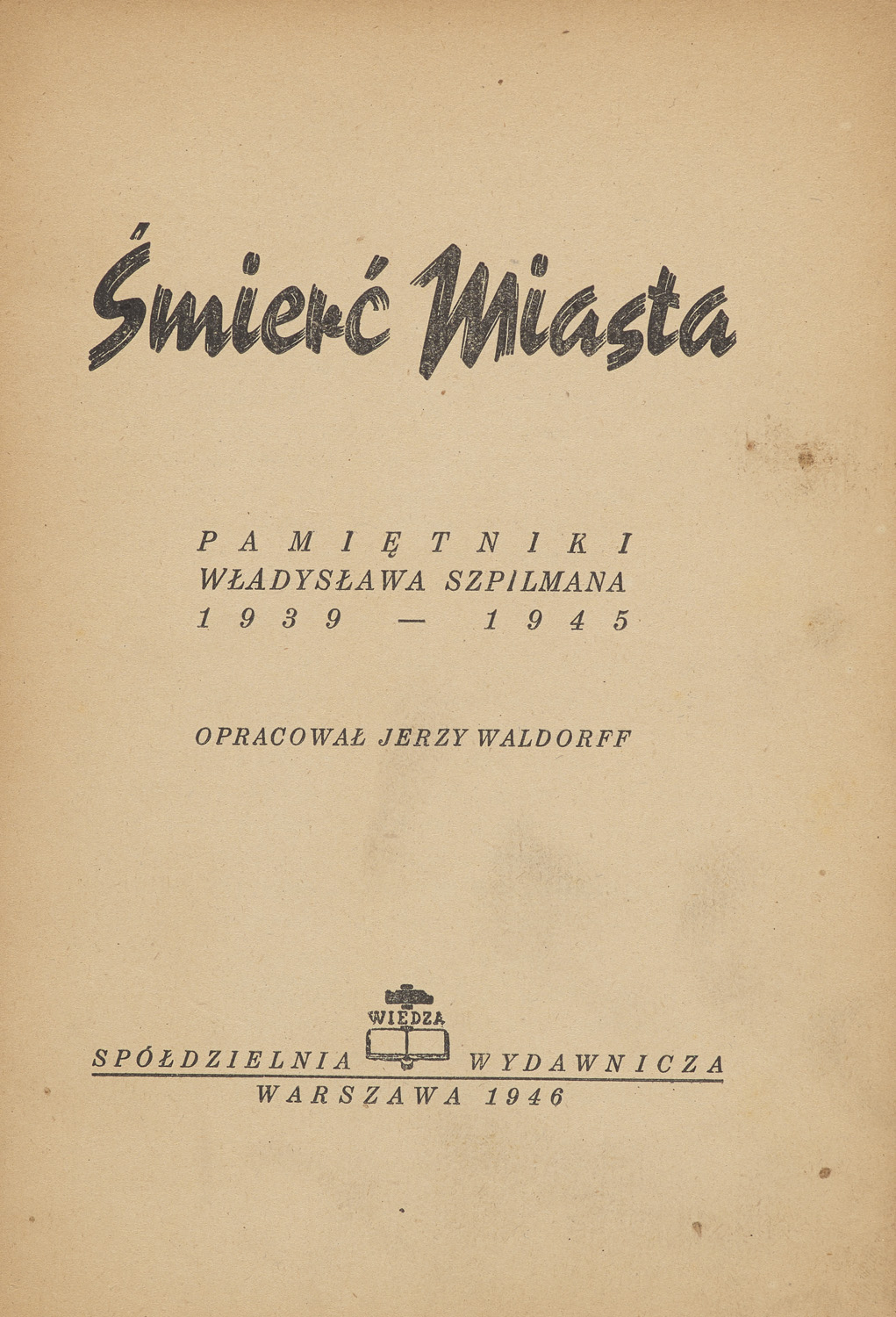 Lot 448 Wladyslaw Szpilman. Smierc Miasta. Pamietniki …