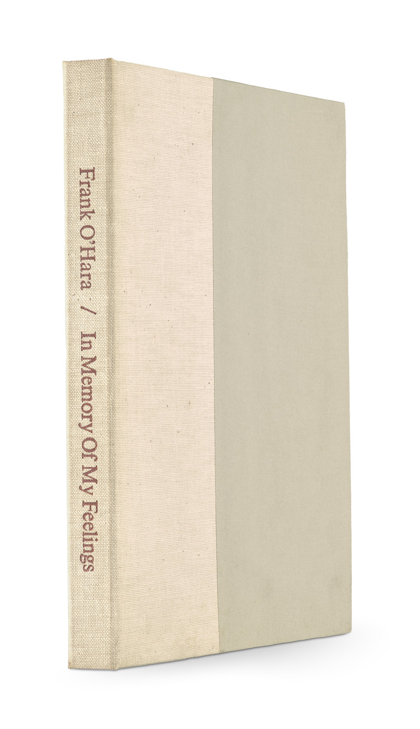 In Memory of My Feelings. Frank O`Hara. Mit Lithographien von 30 Künstlern, viele im Stein signiert bzw. monogrammiert. Je auf Mohawk Superfine Smooth Velin. New York, The Museum of Modern Art, 1967. Blattmaße je 30 x 22,5 cm (unaufgefaltet). 55 je gefaltete und lose Bögen inliegend in original HLwd. Chemise mit RTitel und original Leinenschuber. (Schuber fleckig und angestaubt. Leicht bestoßen.)