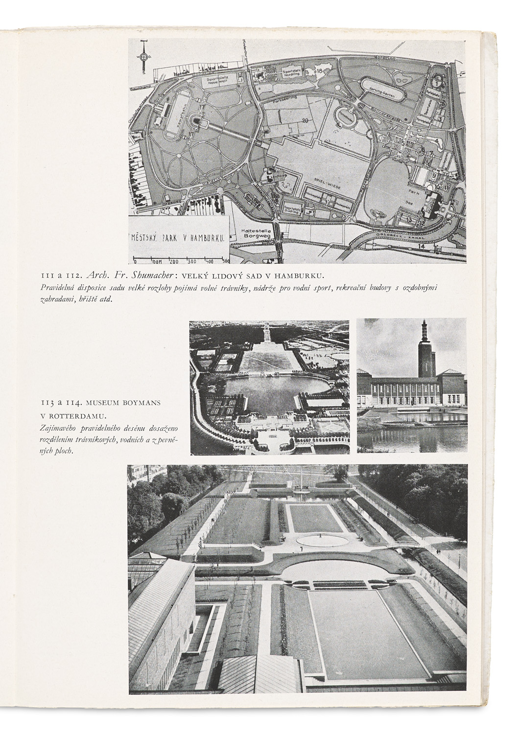 Zahrada a obydlí. Základní zásady zahradní komposice. Mit 125 Illustrationen. Prag, Vydal Jan Laichter, 1938. 55, 9 S. Gr.-8°. OPp. (Vorderes Gelenk größtenteils gebrochen. Ränder bestoßen.)
