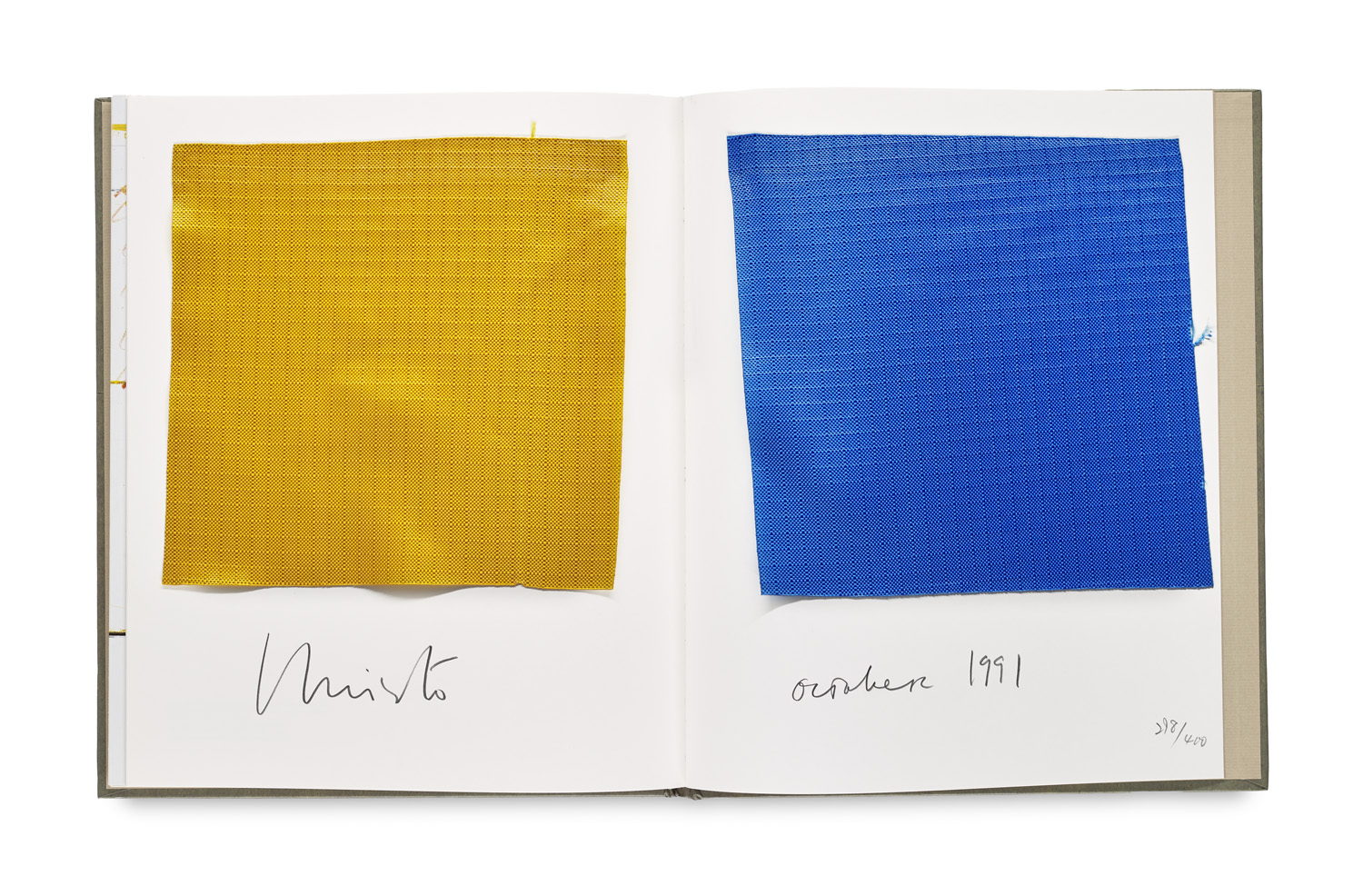 Moderne Literatur und Kunst – Eins von 400 nummerierten Exemplaren der Vorzugsausgabe. - Mit den zwei montierten "Umbrella" Stoffen, signiert und datiert. - Publikation zu Christos Umbrella Project. Installation von Schirmen in zwei Regionen, einmal in Kalifornien nördlich von Los Angeles und in Japan nördlich von Tokyo. - Insgesamt sehr gut erhalten. - Dabei: 2 signierte Postkarten zum Umbrella Project.