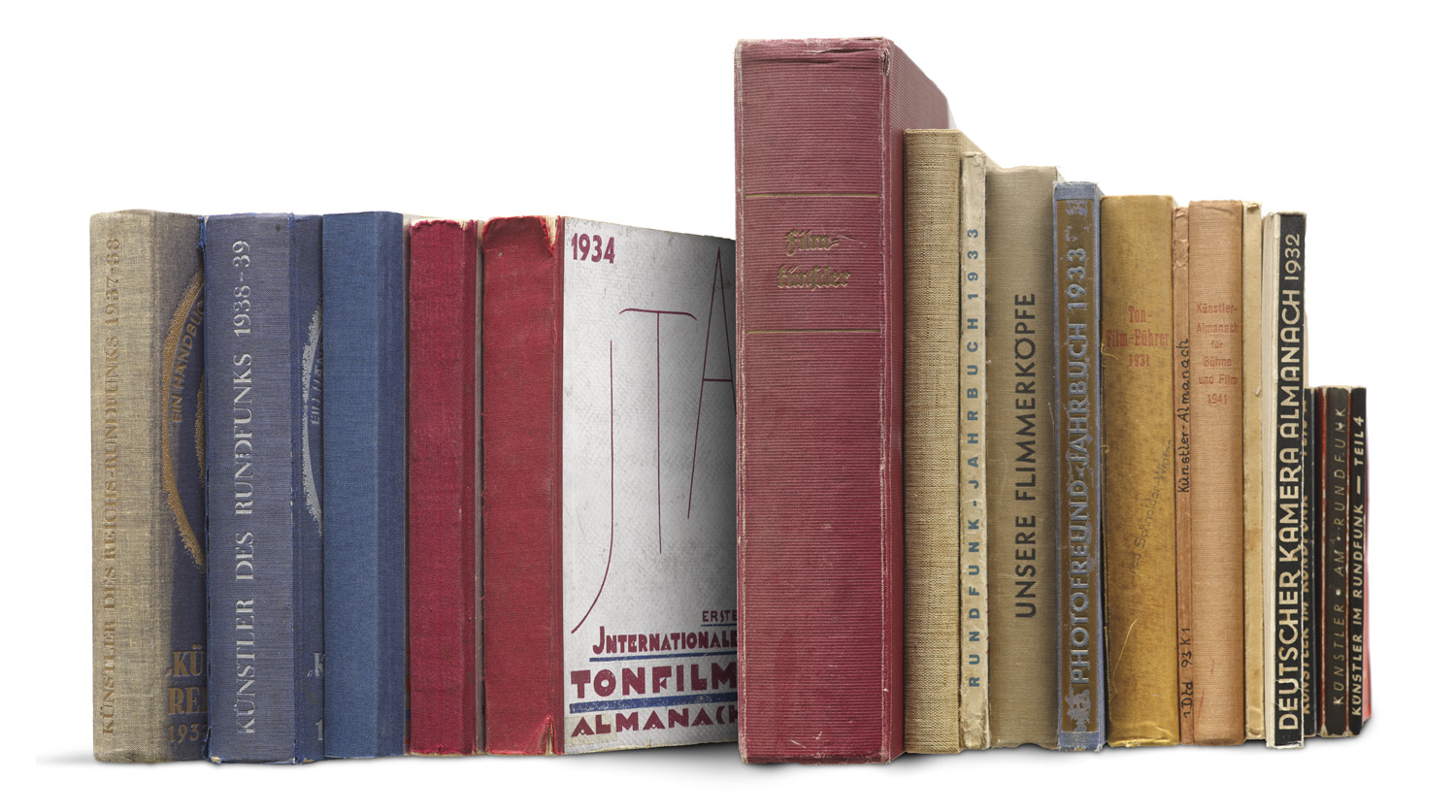 Moderne Literatur und Kunst – Enthält: Treuner, H., Filmkünstler. Wir über uns selbst. 1928. - Erster Internationaler Tonfilm-Almanach. Jgge. 1931, 1934, 1935/36. - Künstler des REundfunks. Jgge. 1937/38 u. 1938/39. - Unsere Flimmerköpfe. 2. Ausgabe 1929. - Künstler-Almanach des Rundfunks. 1933. - Künstler-Almanach Konzert und Funk 1933. - Rundfunk-Jahrbuch Jg.- 1932,1933,1936. - Photofreund-Jahrbuch 1933. - Deutscher Kamera-Almanach 1932. - Tonfilm-Führer Jgge 1931 u. 1934. - Künstler-Almanach für Bühne und Film 1941. - Teils mit leichten Gebr.-Spuren, Namenseinträgen etc.