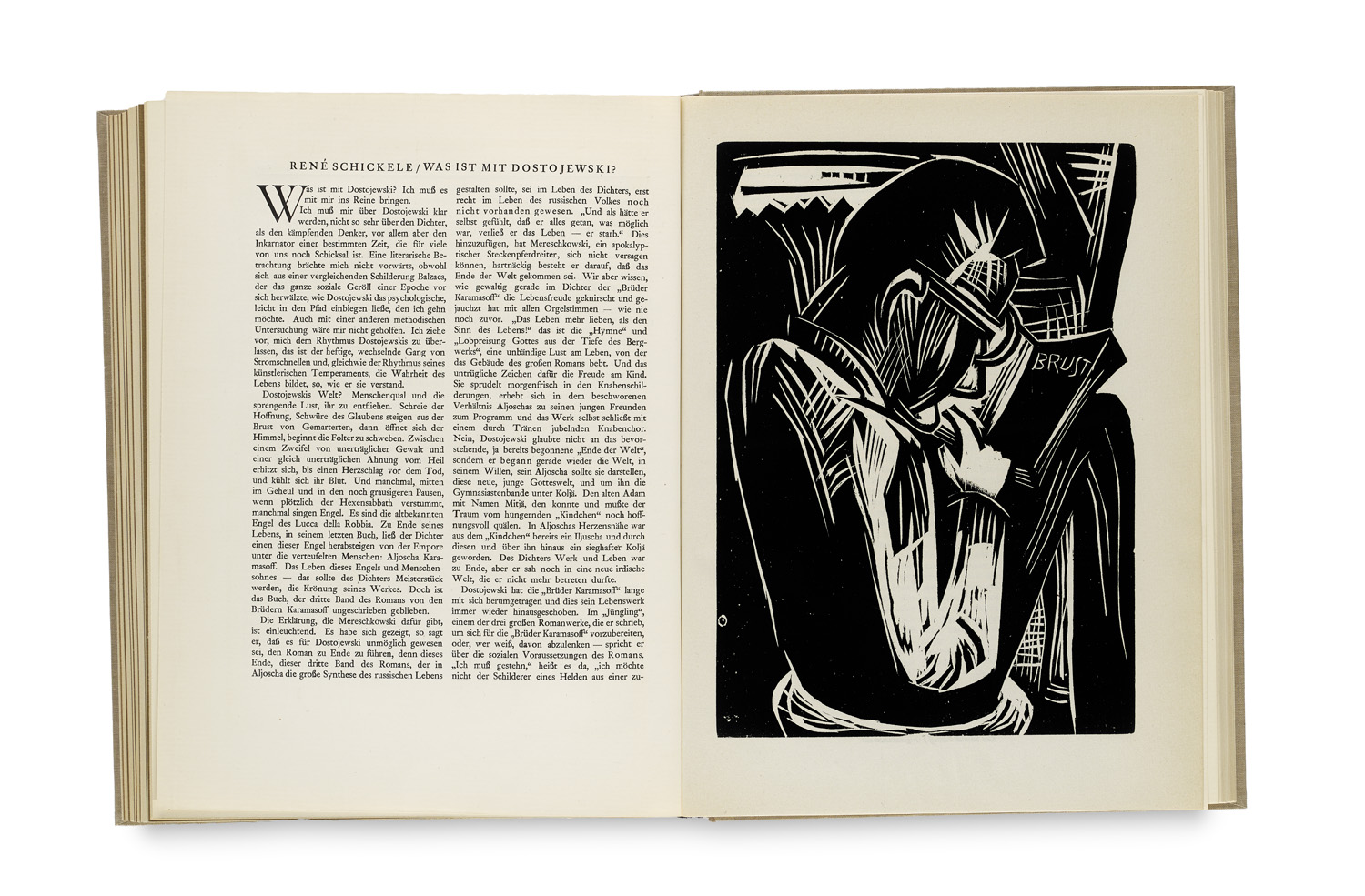 Moderne Literatur und Kunst – 2. Jahrgang der wichtigen künstlerisch-literarischen Zeitschrift des Expressionismus. - Raabe 74 - Schlawe II, 46 - Söhn HDO 120 - Mit Original-Graphiken von Erich Heckel (Mädchenkopf, Holzschnitt, Dube 164 B), Georg Ehrlich (Tröstung, Lithographie 1920), Franz Masareel (Businessman, Holzschnitt 1929, von der Gabelentz D a 9), Max Kaus (Kopf, Holzschnitt 1920), Andre Rouveyre (Kopf, Holzschnitt 1920), Edwin Scharff (Die Brüder, Lithographie), Archipenko (Figürliche Komposition, Lithographie), Carl Hofer (Das Nest, Lithographie, Rahenau 34), Karl Schmidt-Rottluff (Lesender Mann, Holzschnitt, Schapire 274), Alexander Kanoldt (Klausen, Lithographie 1922). Literarische Beiträge v. Döblin, Hesse, Heym, Kafka (Erstes Leid, Dietz 42, Erstdruck), Schickele, Werfel sowie die beiden wichtigen Aufsätze von L. de Marsalle (Pseud. für E.L. Kirchner): 'Zeichnungen von E.L. Kirchner' u. 'Über Kirchners Graphik'. - Gutes, sauberes Exemplar.