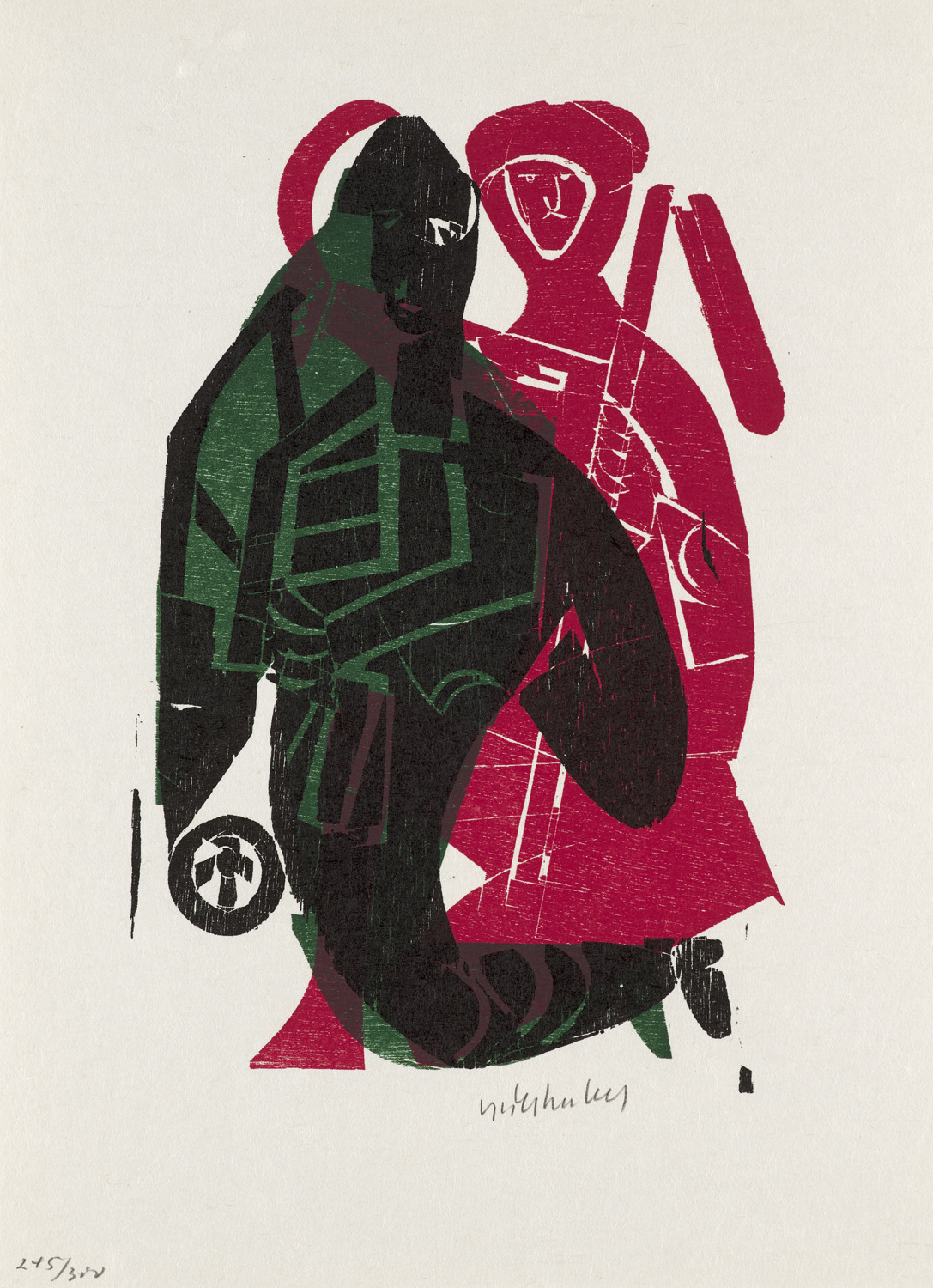 Modern Literature and Art – Collection of 10 works with numerous original prints by the artist. - Contains: Jerg Ratgeb - compatriot, martyr. Special edition with signed OFarbwoodcut on Japan. Stuttgart, Dt. Sparkassenverlag, 1976. ill. Softcover in OPp. portfolio with DIllustration. One of 300 numm. Ex. - Stations of the Cross. Meditations by Stefan Cardinal Wyszynki. With 14 double-sided woodcuts. Berlin, Rembrandt 1967. gr.-4°. OLwd. with embossed D title and R title. in illustrated OUmschlag. In pp. Slipcase with mounted R-title. One of 3000 numm. Ex. - Hendrik Nicolaas Werkmann. Exhib. cat. of the Städt. Gal. Bochum, 1961. 4°. Ill. Soft cover. Typographic design by Grieshaber. - Kato i diktatoria contra la junta. Exhib. cat. of the Staatl. Kunsthalle Berlin, 1977. with 6 bound-in woodcuts. 4°. Ill. OBroschur. - 3 issues of The Angel of History: No. 13, 1969. no. 22, 1975. no. 23, 1976. Hamburg, Claassen. Folio. Each ill. OBroschur. - 3 copies of Spektrum. No. 72 Zurich, Spektrum, 1976. folio. Ill. OBroschur.