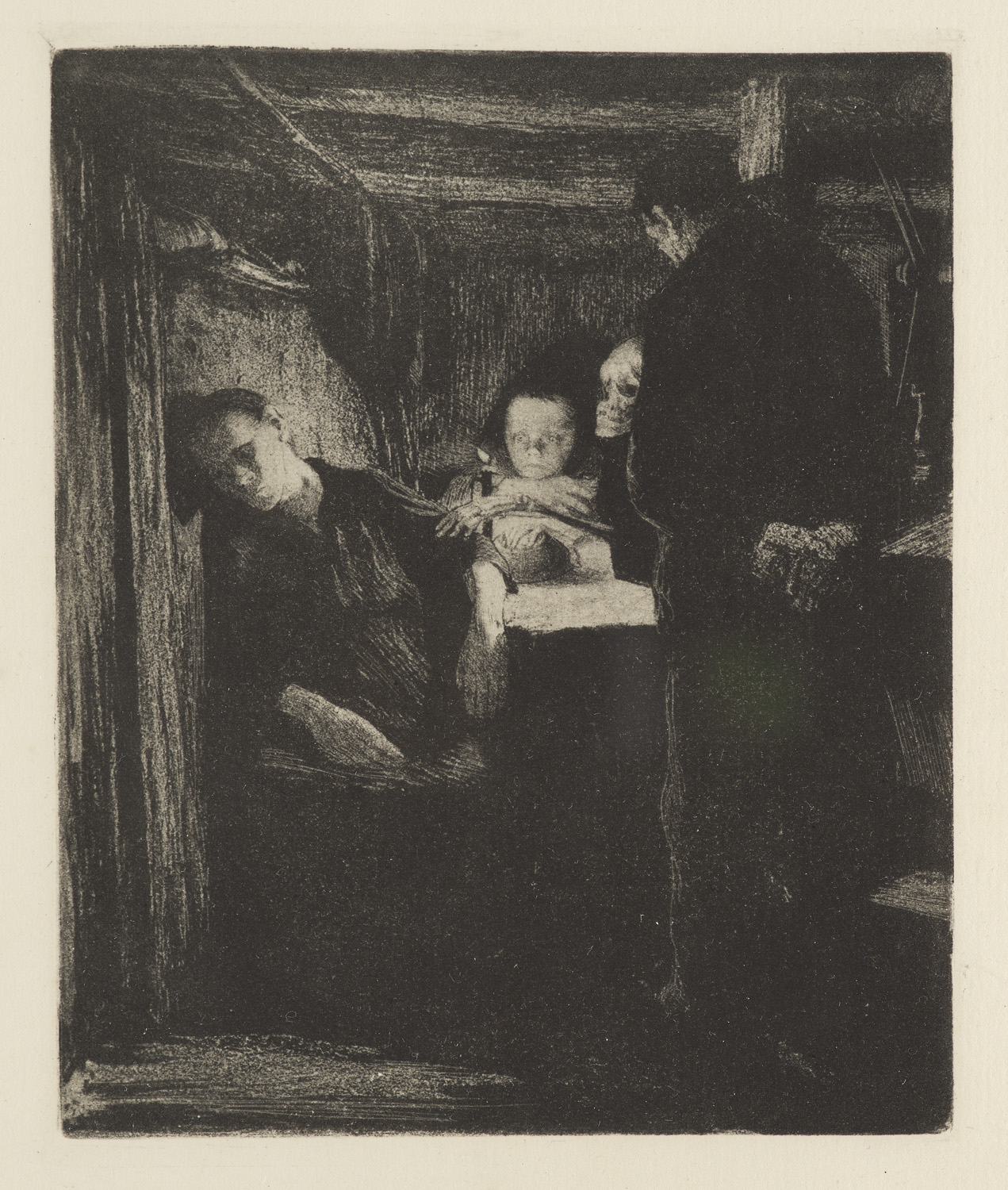 Die Weber. Schauspiel aus den Vierziger Jahren. Mit einer Titelvignette, Schlußvignette und 6 Tafeln in Handkupferdruck nach Radierungen von Käthe Kollwitz. Frankfurt am Main, Steinthal (1917). 2 Bl., 127 S., 1 Bl. 4° OBrosch. (Umschlag minimal fleckig und bestoßen).