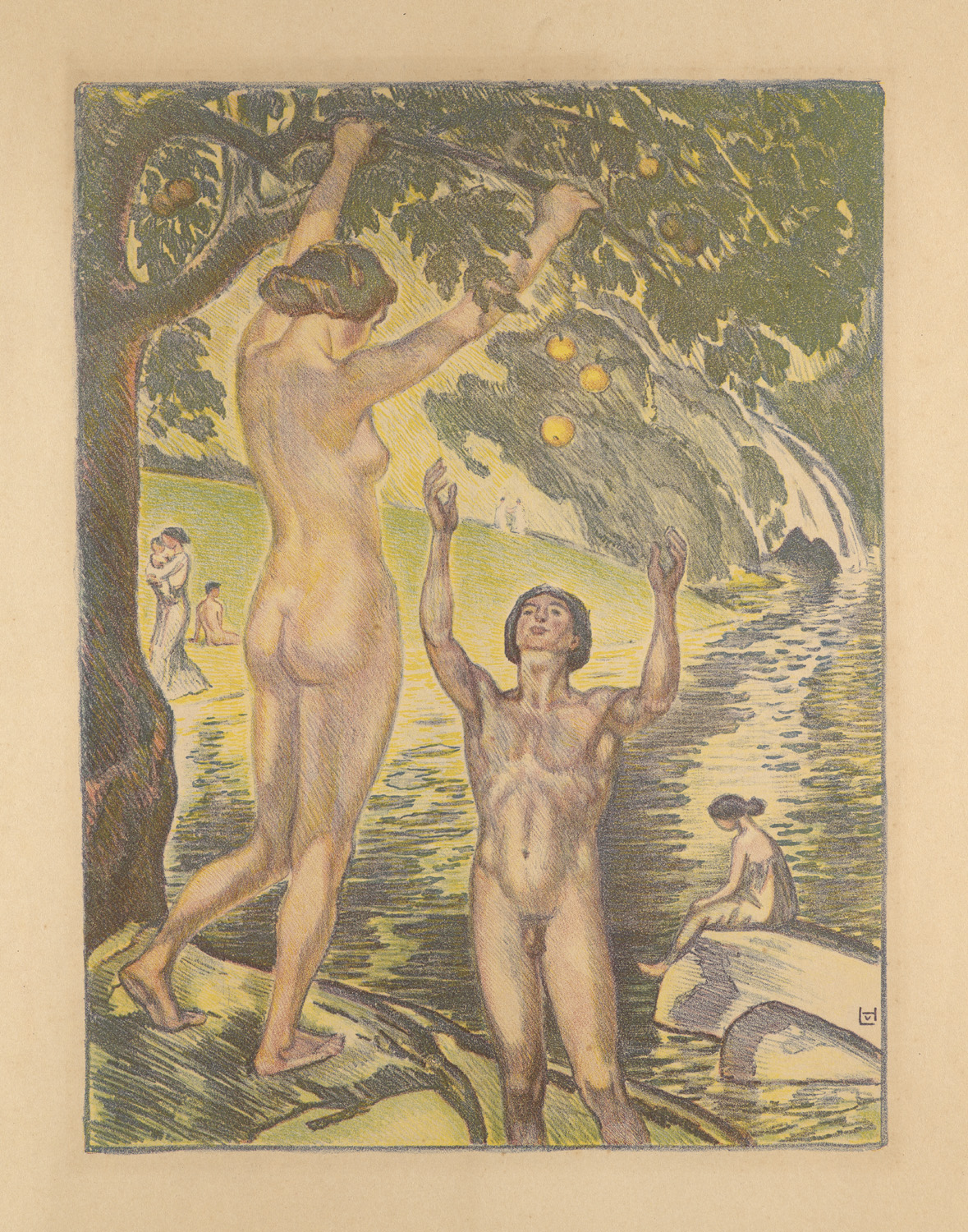 Modern Literature and Art – Lithograph in colours on wove paper. Monogrammed in the stone. - Evenly browned due to paper, minimally stronger in former mat cut-out, lower right corner with slight compression and minimally creased. Good overall. Excellent, chalk-like impression with margin.
