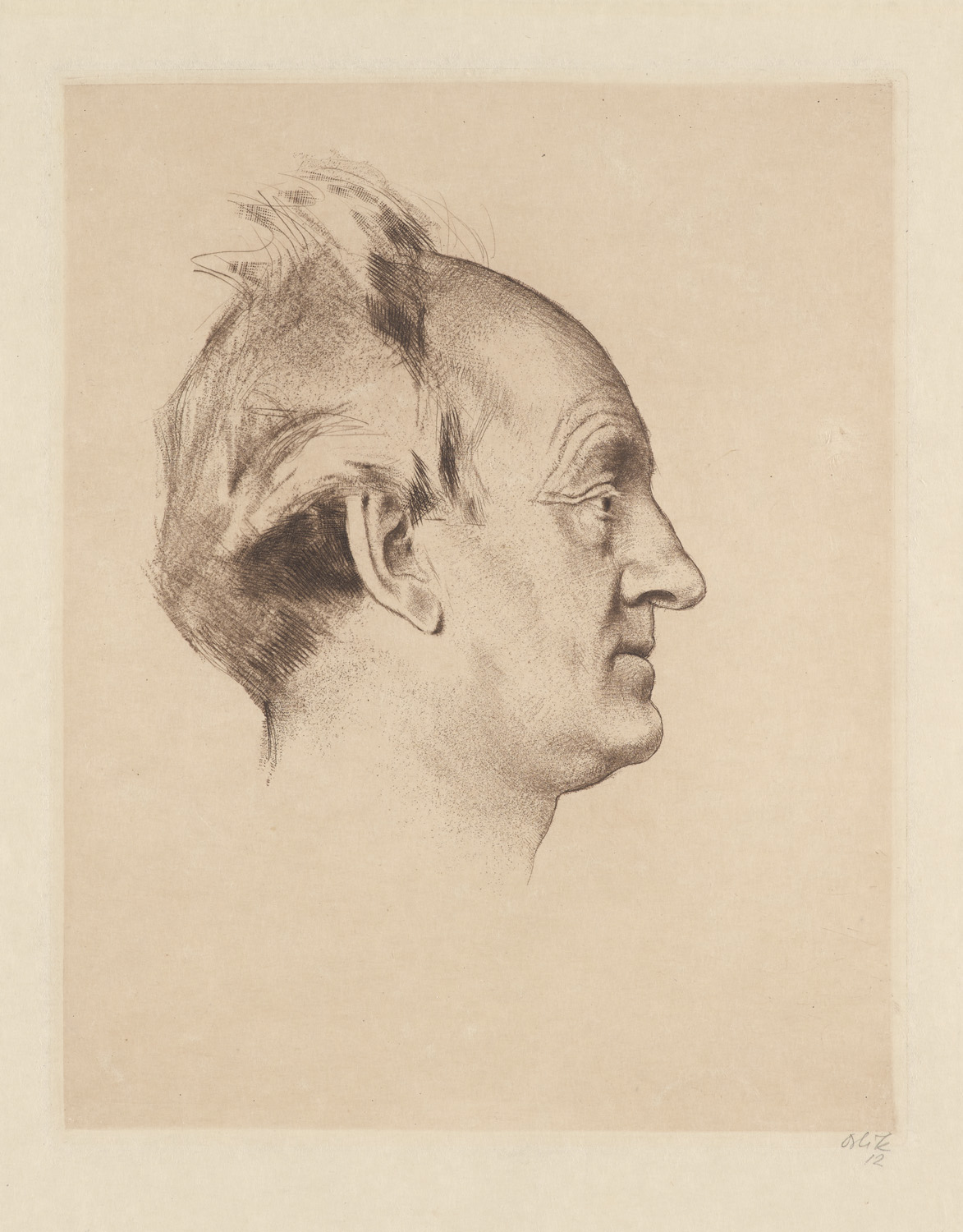 2 Arbeiten mit Porträtdarstellungen Gerhart Hauptmanns. 1912. Radierung in Braun auf Velin bzw. Lithographie auf Bütten. 22,5 x 18 cm (35 x 27,5 cm) sowie 25 x 19 cm (32,7 x 25 cm). Je signiert, eine Arbeit datiert, eine Arbeit bezeichnet "Probedruck".