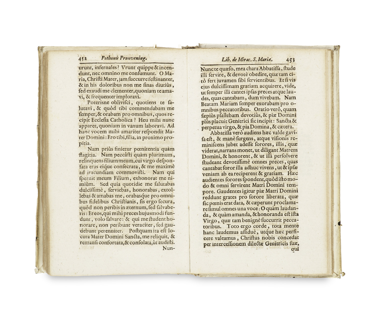 Agnetis Blannbekin ... Vita et Revelationes ... Mit: Pothonis ... Liber de miraculis Sanctae Dei genitricis Mariae. Utriumque Opusculum ex MSS. Codd. primum edidit R. P. Bernardus Pez ... Wien, Monath, 1731. 12 Bl. (Sign. x8, xx4), 456 (recte 446) S., 9 Bl. (Index, Errata). Kl.-8°. Pgt. d. Zt. mit span. Kanten (an wenigen Stellen gering wurmgängig, etwas beschabt und fleckig).