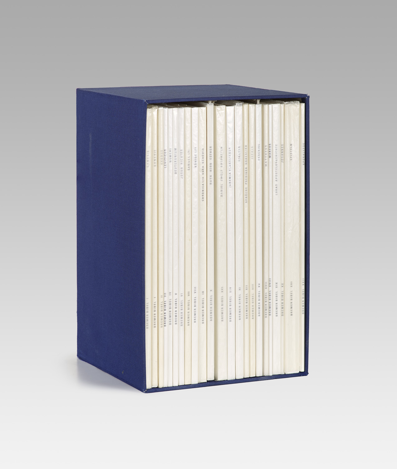 Bremer Bibel. 22 Hefte. Hrsg. von Dietrich E. Sattler. Mit 22 lose beil. Orig. Radierungen von F. Meckseper. Bremen, Neue Bremer Presse, 1987-1992. Gr.-8°. OUMschl. in Lwd.-Kassette.