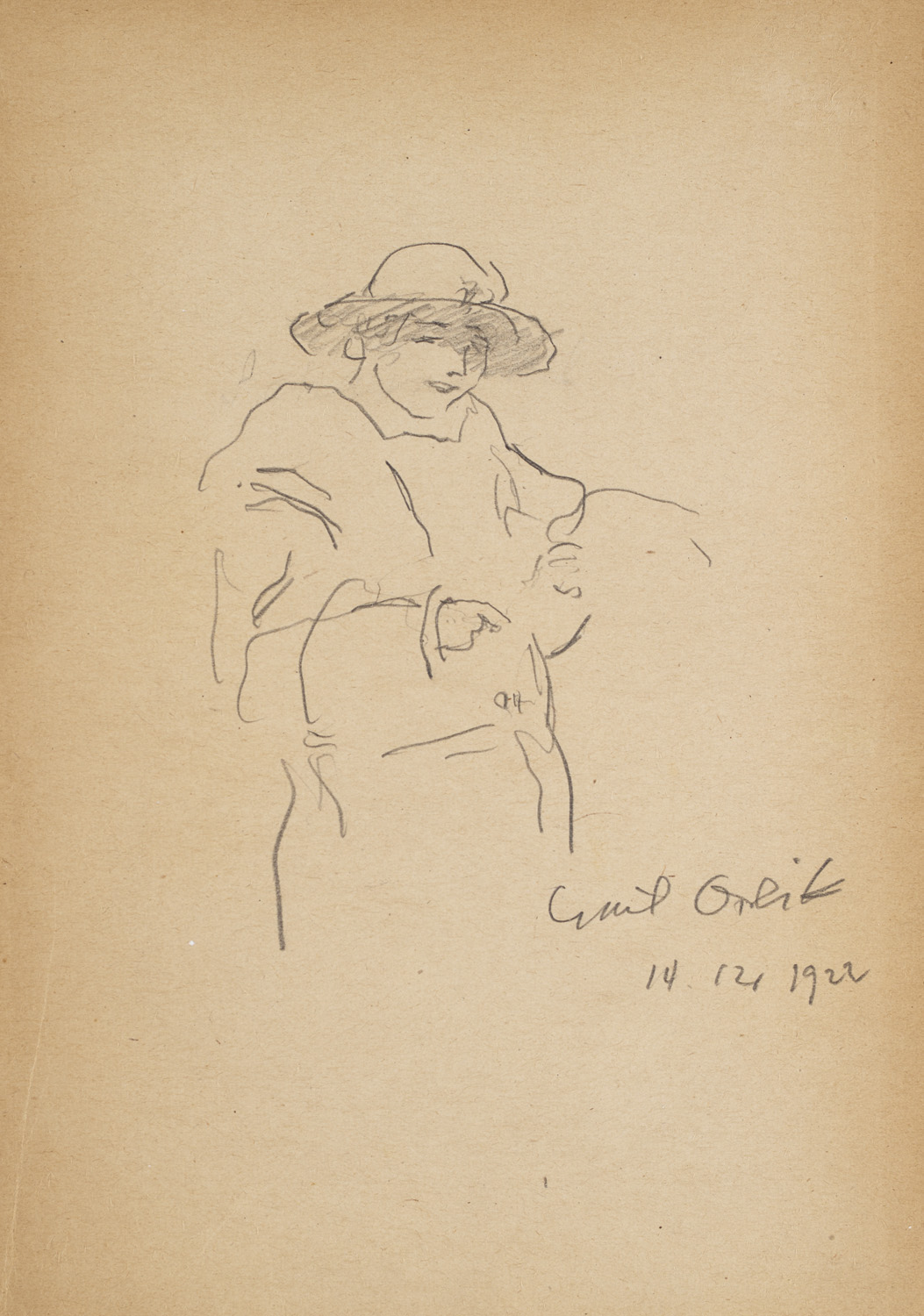 Moderne Literatur und Kunst – Zweiter Band der Reihe. Die signierte Zeichnung in Bleistift auf dem vorderen fliegenden Vorsatz ausgeführt, datiert 14. Dezember 1922. - Buchblock gebrochen. Papierbedingt gebräunt. Unikatäres Exemplar mit der schwungvollen Zeichnung.