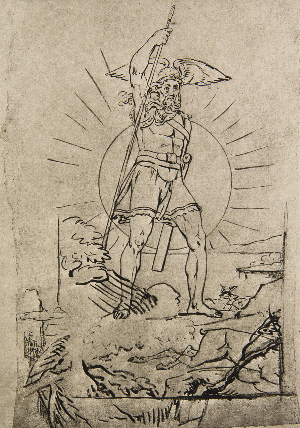Fingal in Lochlin. 3 Gesänge in neuer Übertragung von Alfred Kurella. Mit 12 bisher unveröffentlichten Zeichnungen von Ph. O. Runge. Berlin, Goldschmidt-Gabrielli, 1920.. 35 Bll. Folio. Original-Ganzpergament mit goldgeprägten Initialen O R auf Vorderdeckel und Kopfgoldschnitt