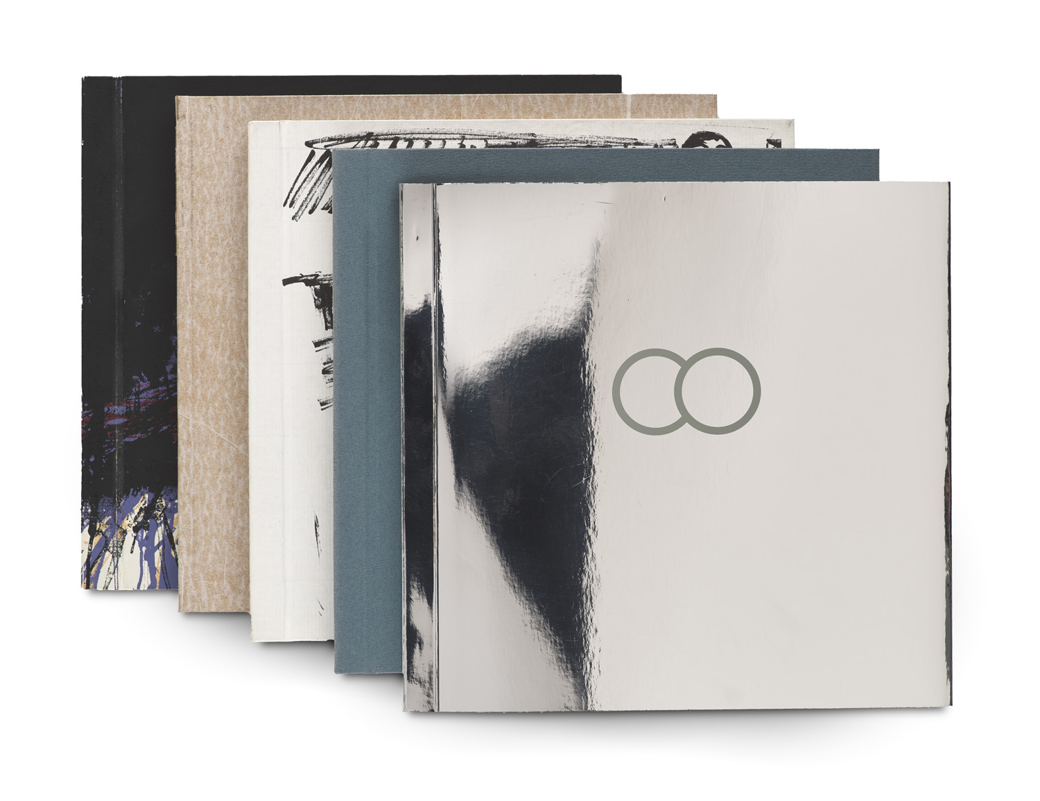Moderne Literatur und Kunst – Enthält: VI: Horst Hussel. Mit 7 größtenteils signierten Radierungen, eine als Titelvignette. 1990. Eins von 100 arabisch nummerierten Exemplaren. - VII: Steffen Volmer. Kopfüberlos. Mit 9 signierten Drucken. 1991. Eins von 30 römisch nummerierten Exemplaren, im Druckvermerk signiert. - VIII: Claus Weidensdorfer. Mit neun Radierungen, eine davon als Titelvignette und eine im Text. 1992. Eins von 100 arabisch nummerierten Exemplaren, im Druckvermerk signiert. - IX: Olaf Wegewitz. Mit 13 Drucken. 1993. Eins von 100 arabisch nummerierten Exemplaren, im Druckvermerk signiert. - X: Carsten und Olaf Nicolai. Mit 12 Lithographien. 1997. Eines von 100 arabisch nummerierten Exemplaren, im Druckvermerk signiert. - Alle in sehr gutem Zustand. - Dabei: Steffen Volmer. Gedanke, Gemüt, Bewegung. Sonneberg, Comptoir-Kunstmagazin, 2000. Illustrierte Pp. - Insgesamt gut erhalten.