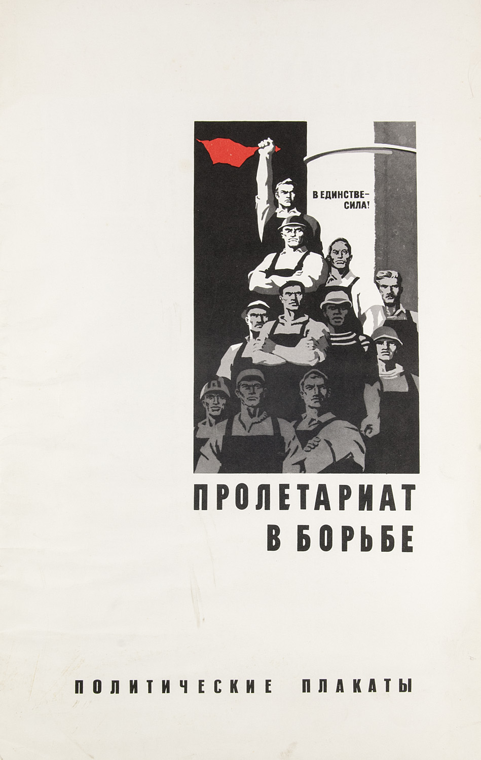 Proletariat im Kampf. Portfolio mit 22 (v. 24) Offset-Lithographien in Rot und Schwarz nach Original-Plakaten. Moskau, 1972. Blattmaße ca. 52,5 x 62,2 cm. OUmschlag (leicht berieben, kl. Einrisse, etw. schmutzfleckig).