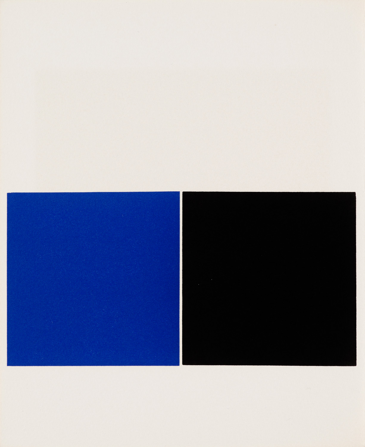 Komposition in Blau und Schwarz. 1979. Bleischnitt auf Velin. 8,5 x 17 cm (22 x 18 cm). Verso Signiert. - Verso mit Abklatsch (leicht durchscheinend, die Ecken kaum merklich bestoßen. Insgesamt sehr gut. Prachtvoller und farbsatter Druck mit Rand.
