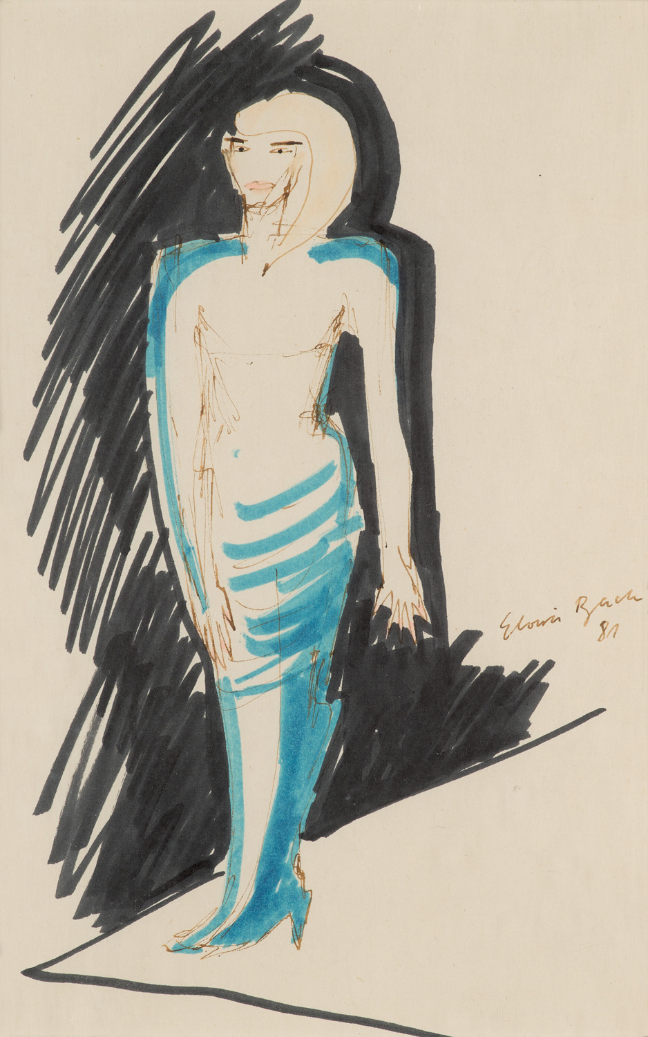 Lot 1072 Elvira Bach. Frauenfigur. 1981. Faserstift …