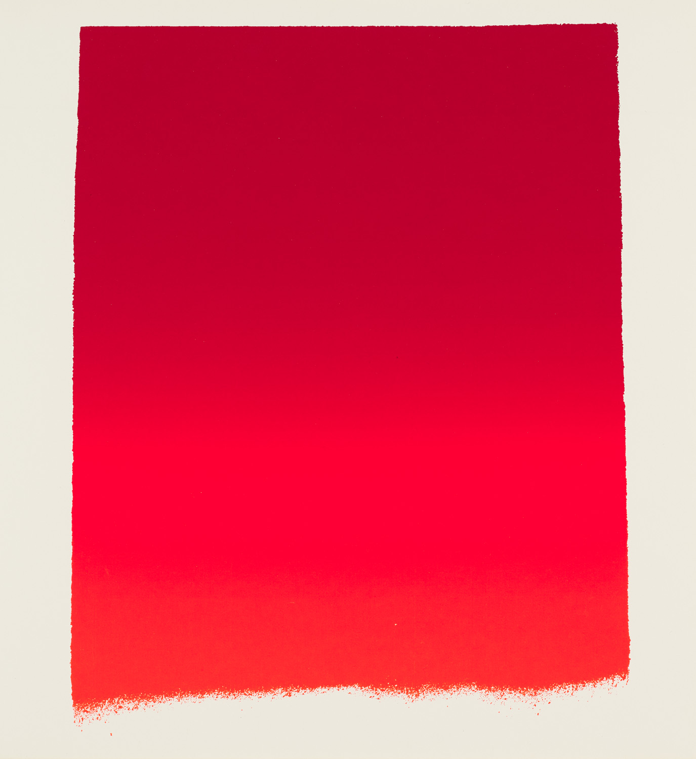 Moduliertes Rot. 1972. Handgedruckte Farbserigraphie auf Velin. 29,5 x 27 cm. - Kaum merkliche Knickspur oben links. Zwei minimale Farbpigmentpunkte auf der Oberfläche, herstellungsbedingt. Insgesamt sehr gut. Prachtvoller, äußerst farbintensiver Druck.