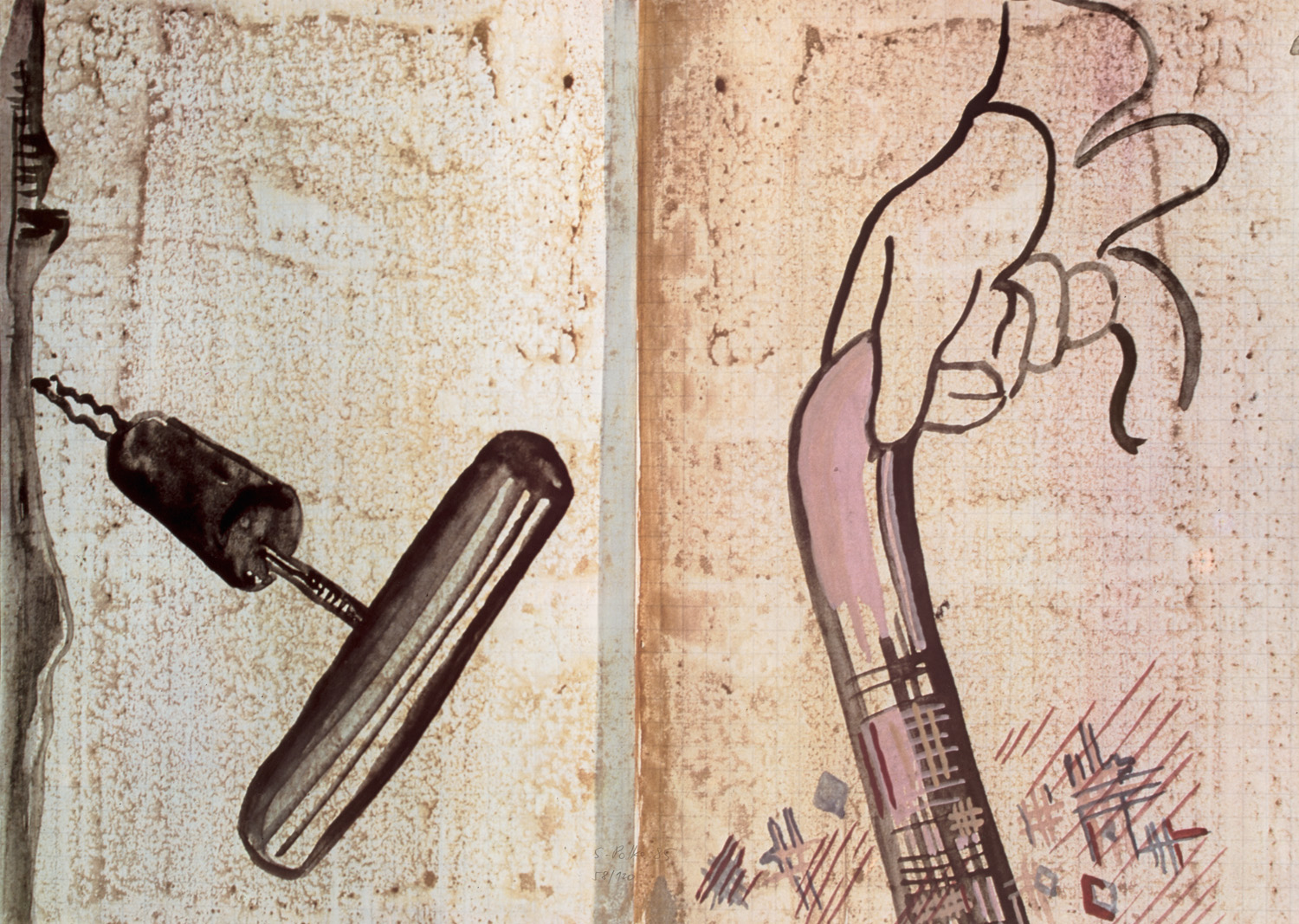 Ohne Titel (Spazierstock). 1985. 4-Farb-Offset auf leichtem Schoeller-Turm Velinkarton. 50 x 70 cm. Signiert, datiert und nummeriert. - Verso mit Bezeichnung fremder Hand in Bleistift. Insgesamt sehr gut. Prachtvoller Druck der Darstellung im vollen Format.