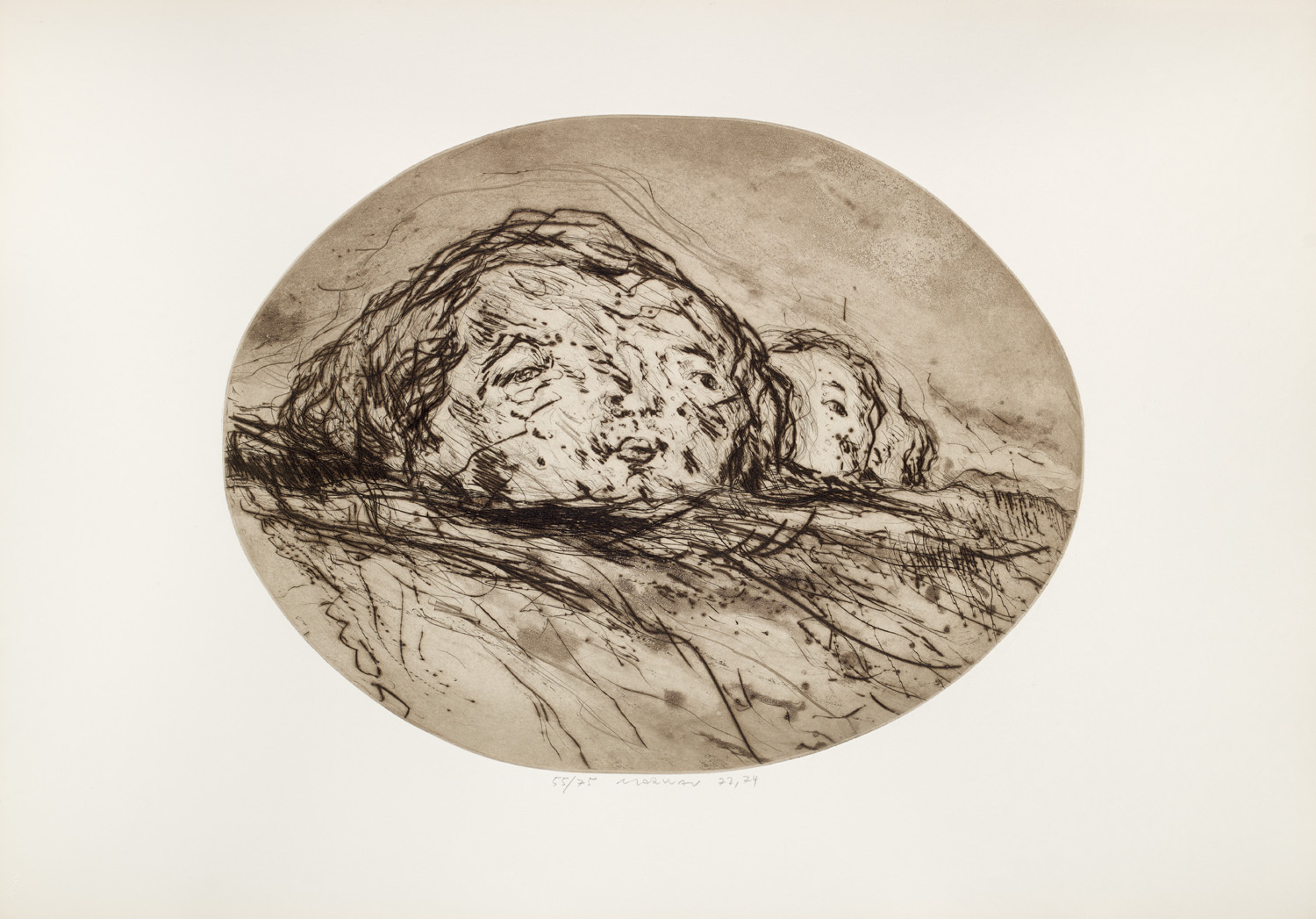 Zwei Köpfe II. 1972/74. Kaltnadel und Aquatinta auf festem Velin. Oval 38 x 49 cm (53,5 x 76 cm). Signiert, datiert und nummeriert. - Im Blattrand punktuell mit unmerklichen Anschmutzungen. Insgesamt sehr gut. Prachtvoller, gratiger Druck der ovalen Darstellung, mit Rand.