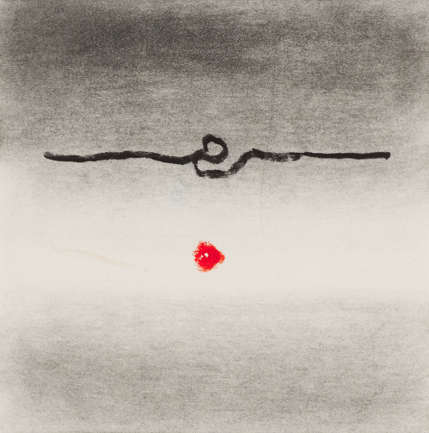 o.T. 1993. Mischtechnik auf Velin. 10,5 x 10,5 cm. Verso monogrammiert "BMD" und datiert. In der oberen Kante verso auf Unterlage und unter Passepartout montiert, unterhalb des Passepartoutausschnitts zusätzlich monogrammiert und datiert. - Insgesamt sehr gut erhalten. Kleinformatige, zarte und doch bewegte Komposition.