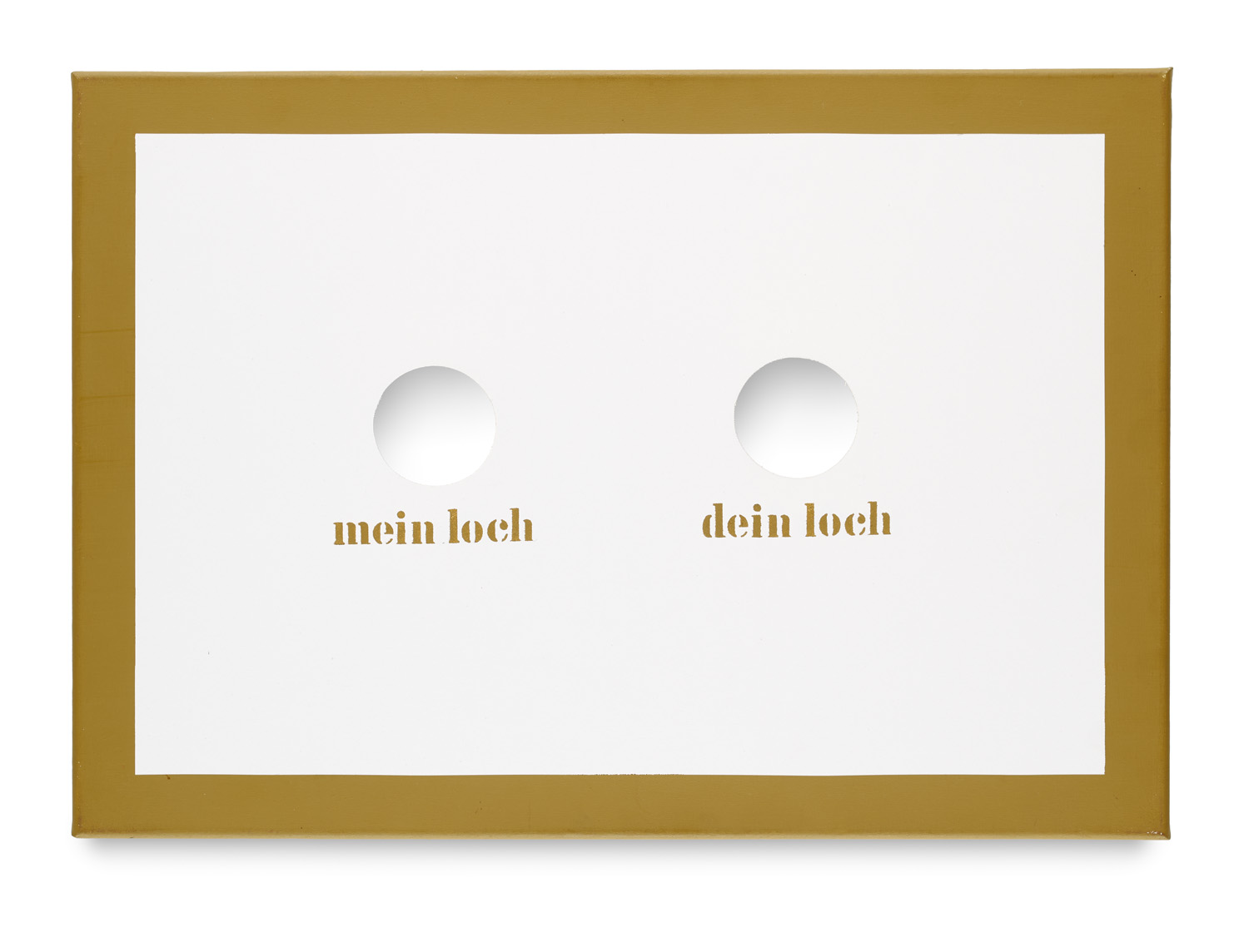 Mein Loch dein Loch. 1971/96. Acryl auf Leinwand, diese mittig mit zwei kreisrunden Ausschnitten. 34,5 x 50 cm. Verso auf der Leinwand signiert, datiert und mit zweifachem Künstlerstempel. - In den Ecken nur punktuell mit minimaler Bereibung. Insgesamt in sehr gutem Zustand.