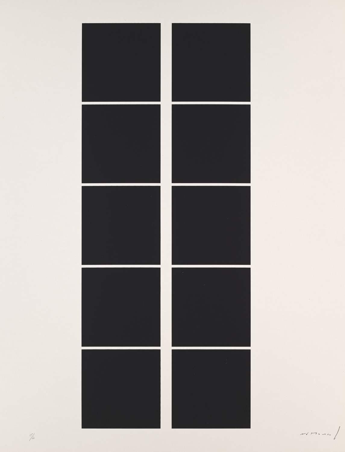 Elévation. 1996. Siebdruck auf weißem Karton. Signiert und nummeriert. 58 x 24 cm (65 x 50 cm). - Vereinzelt mit leichten, oberflächlichen Bereibungen. Insgesamt sehr guter, sauberer Zustand. Prachtvoller Druck mit samtigen Schwärzen.