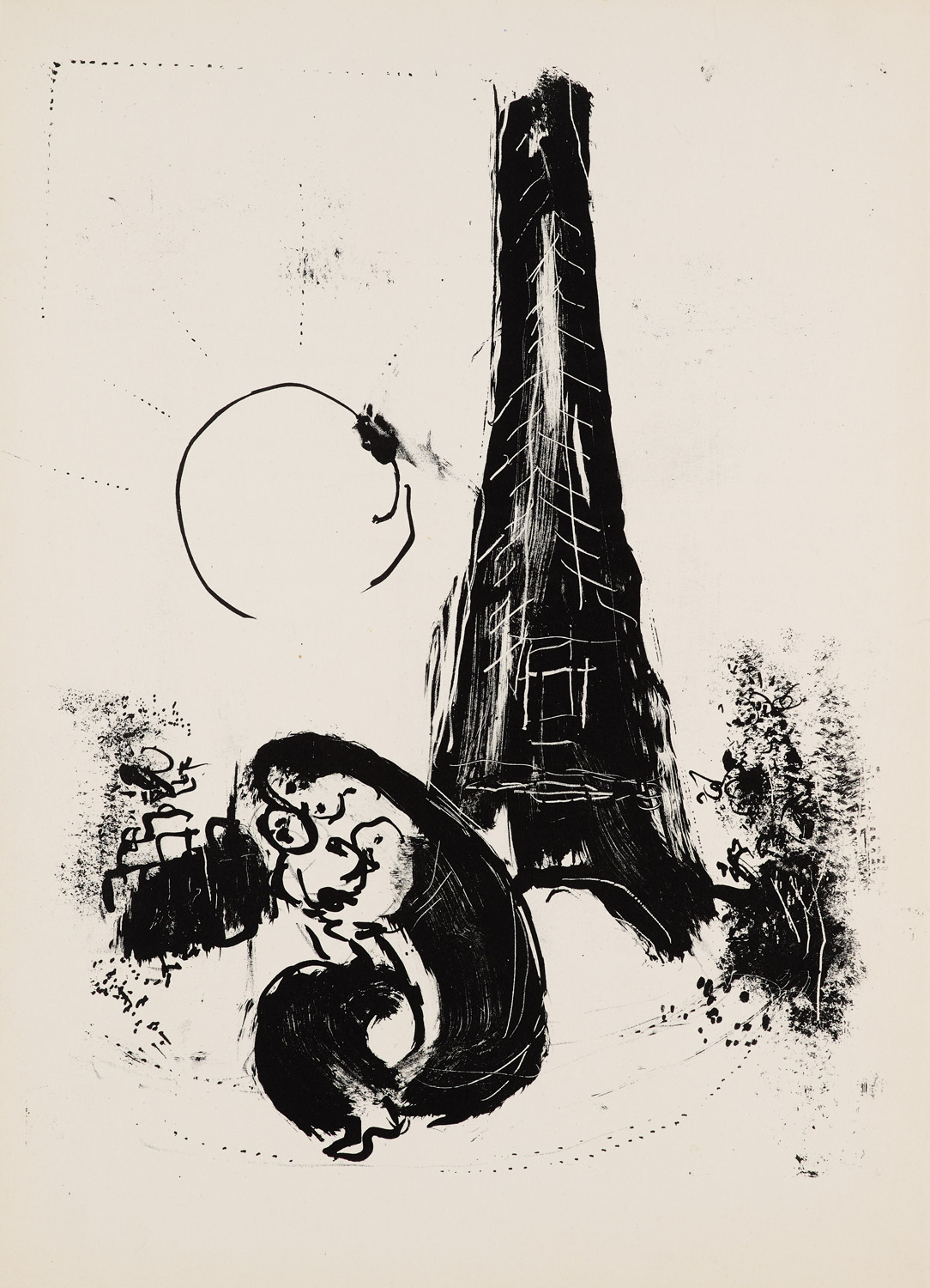 2 Arbeiten. Mère et Enfant à la Tour Eiffel / Le Panthéon. 1954. Je Lithographie auf Velin. Blattmaße je ca. 38,3 x 27,5 cm. Verso je mit Typographie. - Papierbedingt mit leichter Angilbung, "Le Panthéon" im oberen u. rechten Rand mit blassbraunen Feuchtigkeitsfleckchen, "Mère et Enfant" mit winzigem, blassbraunen Fleckchen im oberen Rand, nur vereinzelt schwach griffspurig. Insgesamt gut. Prachtvolle, tiefschwarze, teils kreidig anmutende Drucke.