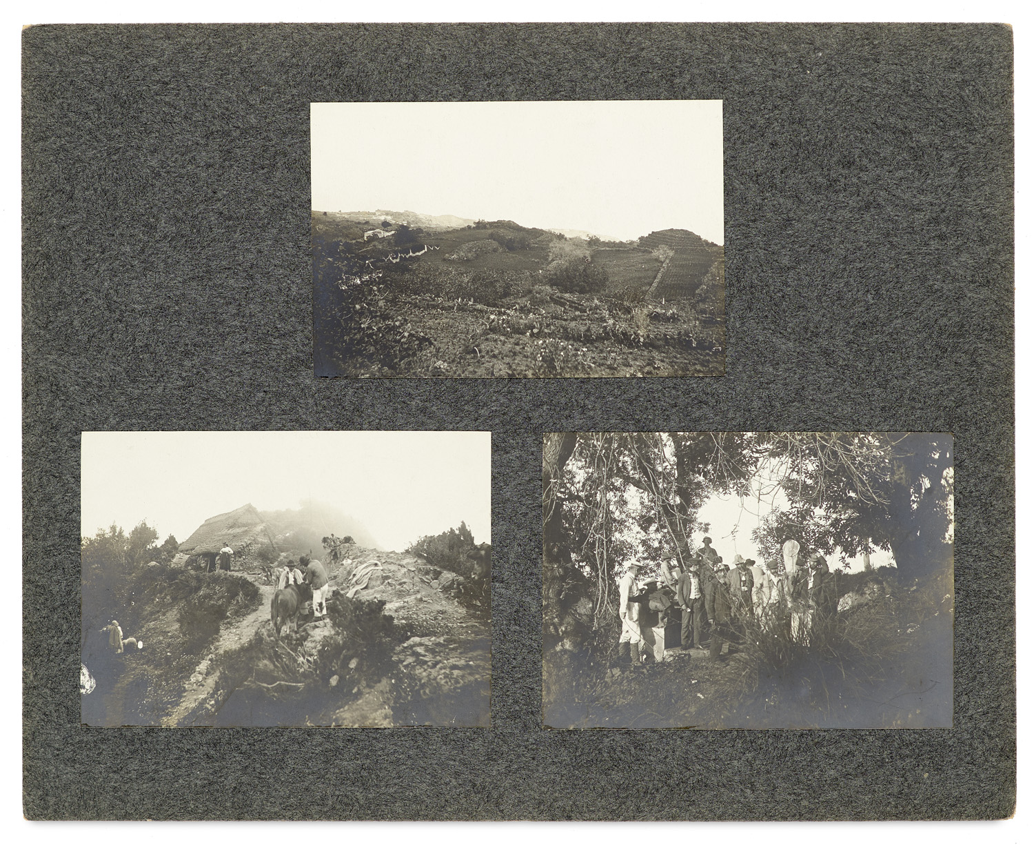 Sammlung von 89 Expeditionsphotos des deutschen Botanikers Erwin Baur auf den kanarischen Inseln. Berlin, um 1905. Silbergelatine, u.a. 7 x 10,5 bis 16, x 11,5 cm (26 x 20,5 cm). Mont. auf 69 Kartontafeln lose in HLwd. Umschlägen mit mont. RSchilden.