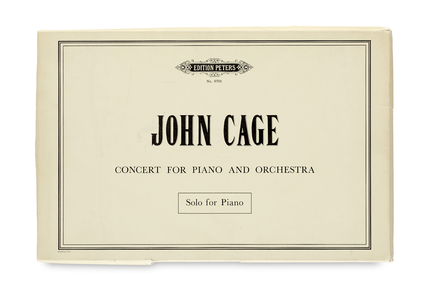 Varia (mit diversen Schlagworten) – Erste Ausgabe von John Cages berühmter experimenteller Partitur als physisches Objekt. - Das in den Jahren 1957 bis 1958 entstandene abstrake, von traditionellen Hörmustern und Wiederholungen freie Werk ist insofern einzigartig im Schaffen Cages, da es nicht nur mit dem Komponisten selbst, sondern auch mit David Tudors maßgeblicher Rolle bei der Realisierung und Aufführung des für den Solopianisten vorgesehenen Teils des Konzerts verbunden ist, den Cage auch als "Solo für Klavier" bezeichnete. Umfasst 84 Grafiken auf 63 Seiten, wobei sich einige Grafiken über zwei oder drei Seiten erstrecken. Der so entstandene Stapel Seiten ist auch ein komplexes physisches Objekt, vergleichbar mit einem dicken Kartenspiel. - Auf dem Titelblatt im Druck gewidmet an Elaine de Kooning. - Titelblatt durchgehend leicht gebräunt, sonst sehr gut erhalten.