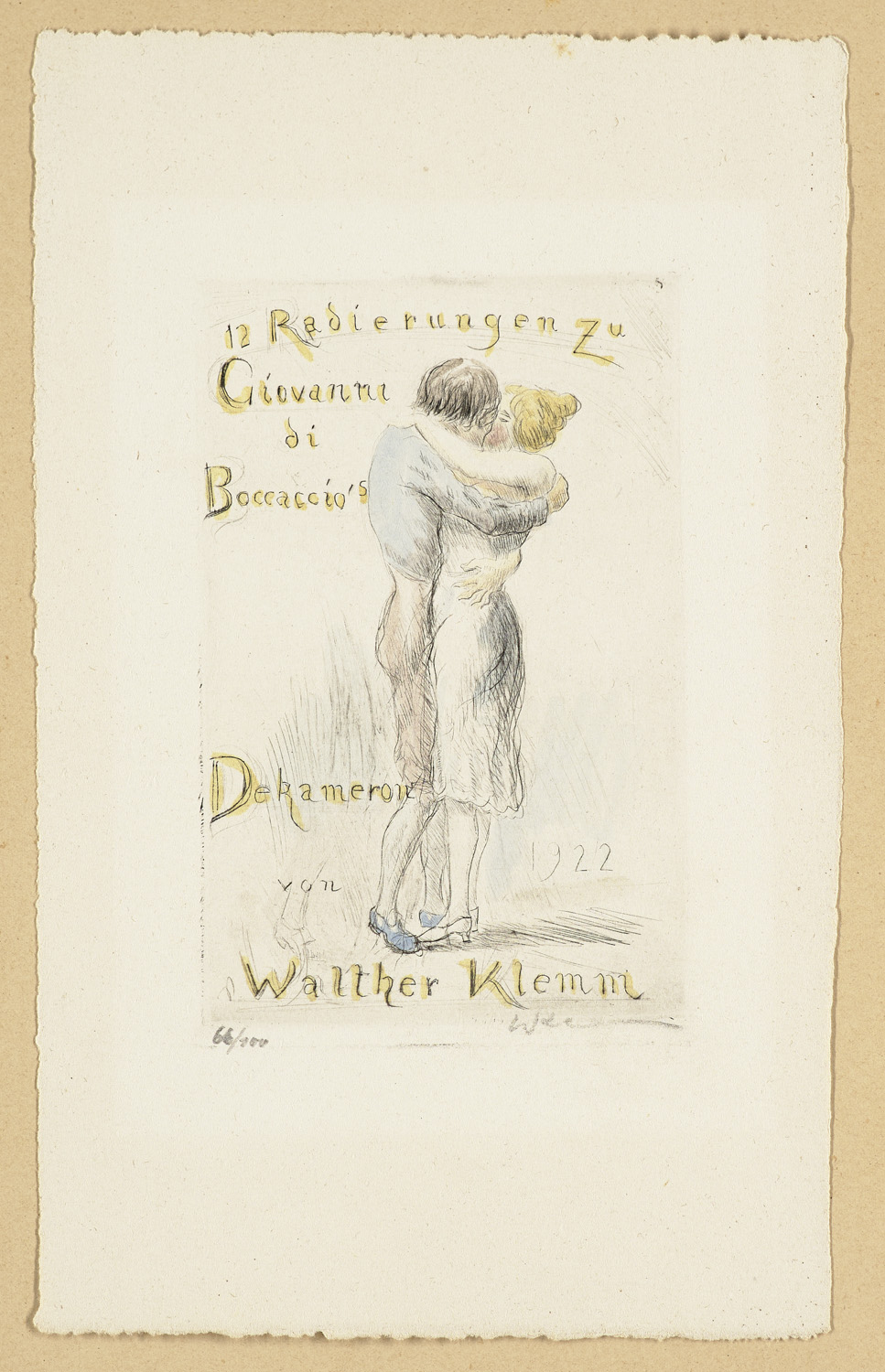Zwölf Radierungen zu Boccaccios "Decameron". München-Pasing, O. Kern, 1922. 2 Blätter mit Titel und Einleitung, 12 Tafeln. Folio. Lose in goldgepr. OLwd.-Mappe (berieben, angestaubt, bestoßen).