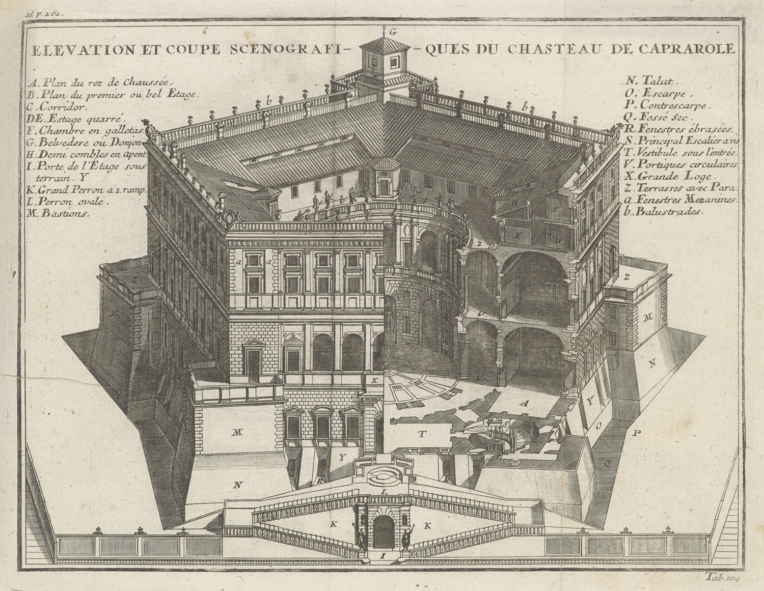 Ausführliche Anleitung zu der gantzen Civil-Bau-Kunst, worinnen Nebst denen Lebens-Beschreibungen, und den fünf Ordnungen von J. Bar. de Vignola Wie auch dessen und des berühmten Mich. Angelo vornehmsten Gebäuden, Alles, was in der Baukunst... vorkommen mag, berühret, an deutlichen Beyspielen erkläret und mit schönen Rissen erläutert wird. - Anhang zu der ausführlichen Anleitung... Mit gest. Frontispiz, zwei Titeln in Rot und Schwarz, 86 (84 blattgr.) Textkupfern und 69 (58 gefalt.) Kupfertafeln sowie 33 teils gef. Kupfertafeln im Anhang. Ausgburg, Hertel, 1759. 15 Bll., 402 S., 13 Bll. 23 S. 8°. Mod. HLdr. mit goldgepr. RSchild.