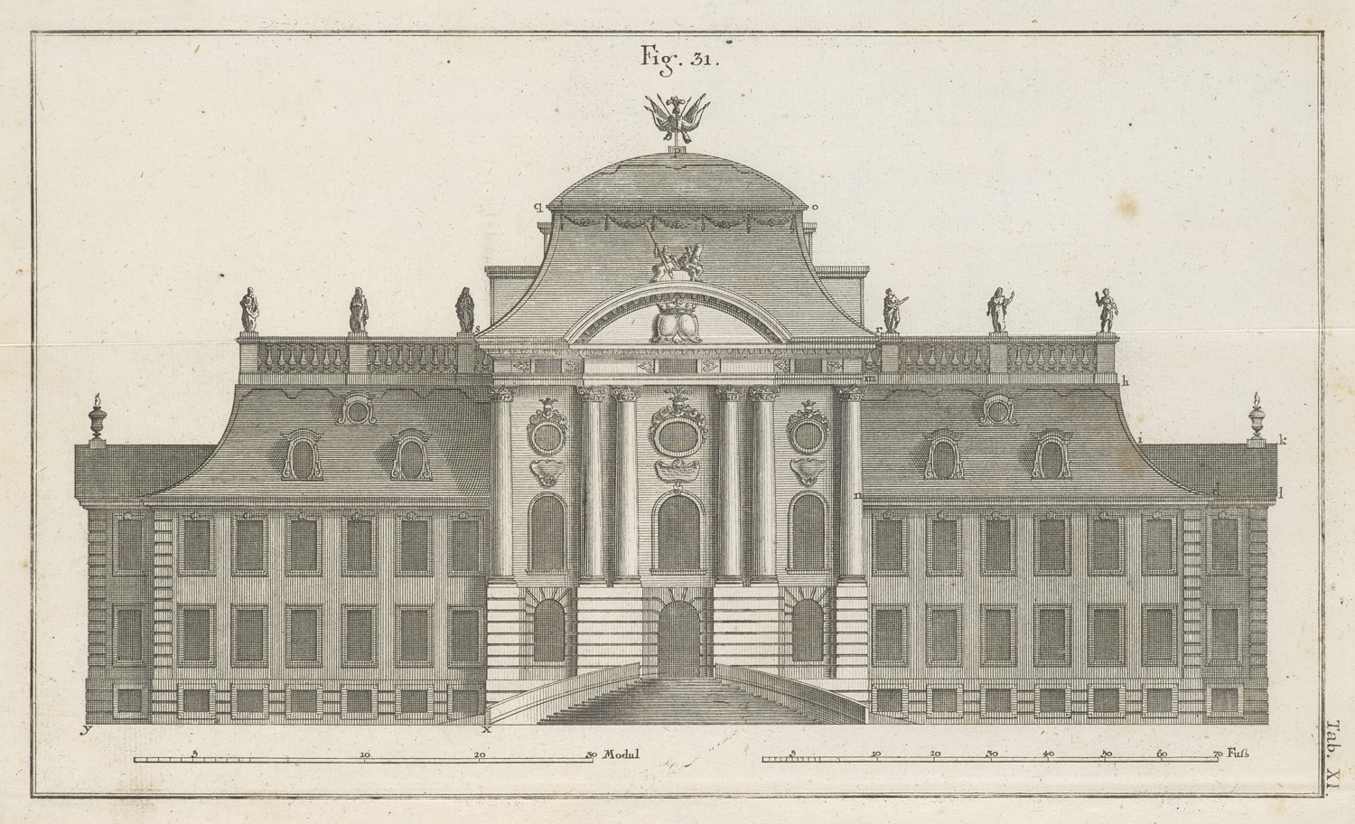 Architektur – Dritte Ausgabe. - VD18 1472460X. - Univ. Cat. Books on Art II, 1571. - Bekanntes Werk über Baukostenkalkulation bezüglich der Material- und Lohnkosten etc., am Beispiel eines Holzhauses und eines Palastes in Steinbau erläutert. Die Tafeln zeigen Ansichten, Grund- u. Seitenrisse sowie Detailansichten der beiden Gebäude. - Etwas braunfleckig. Titelbl. etwas fleckig und mit teils rasierten hs. Annotationen. Insgesamt gut erhalten.