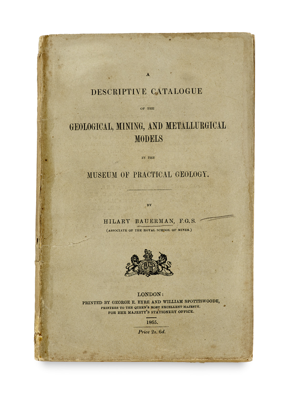 A descriptive catalogue of the geological, mining, and metallurgical models in the Museum of Practical Geology. London, Eyre und Spottiswoode 1865. VIII, 199 (1) S. 8°. OBr. mit Umschl.tit. (Rücken mit Fehlstellen, stw. leicht fleckig, angestaubt).